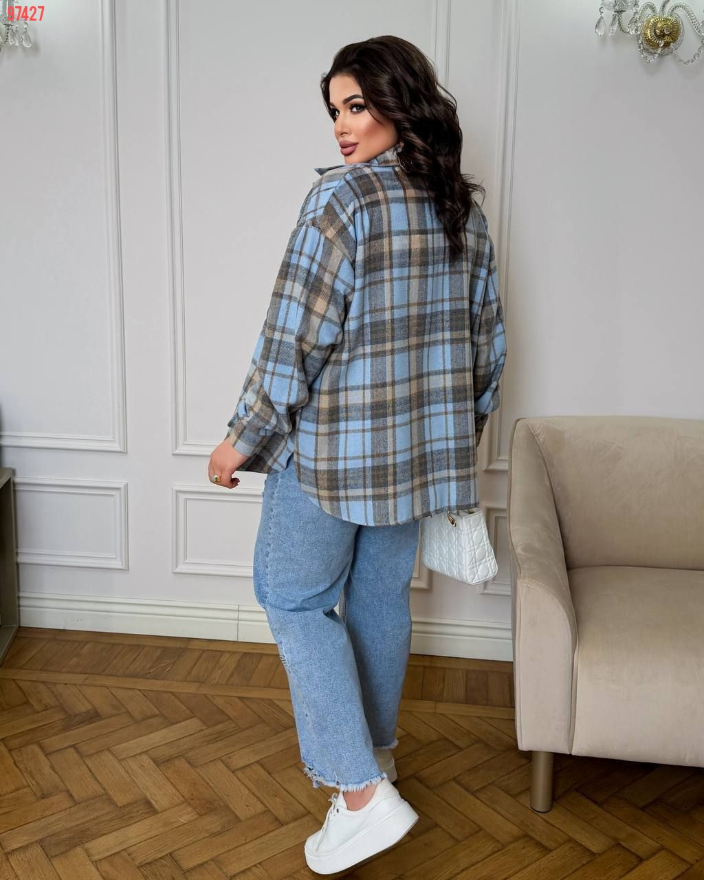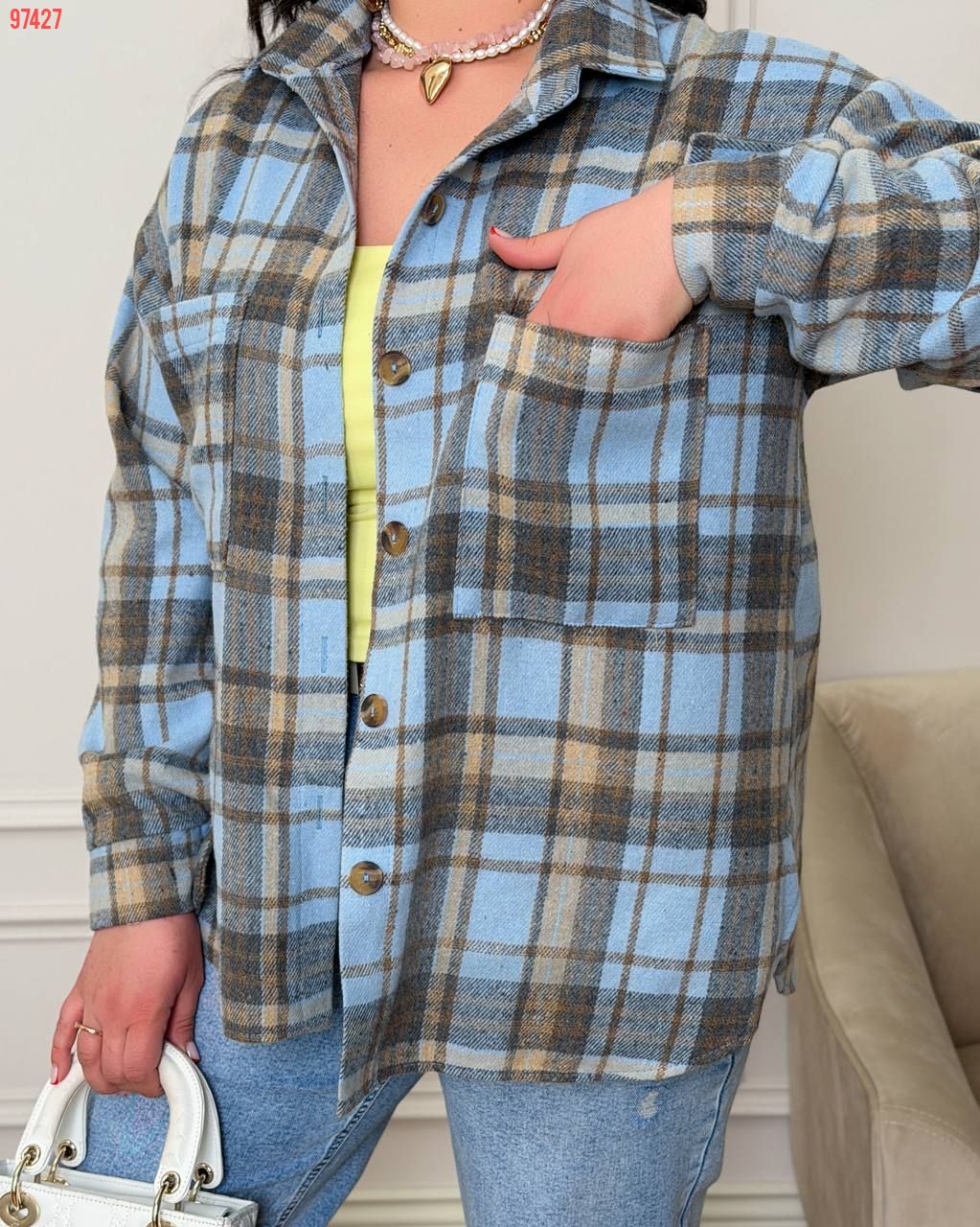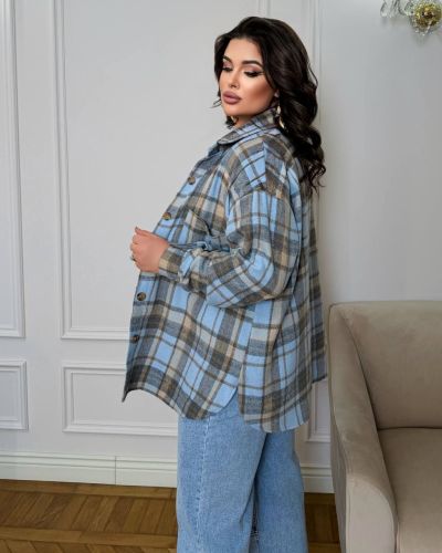 Стильна сорочка в клітинку блакитна №97427