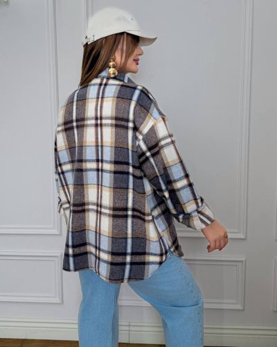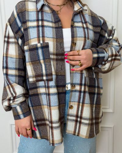 Стильна сорочка в клітинку коричнево-блакитна №97429