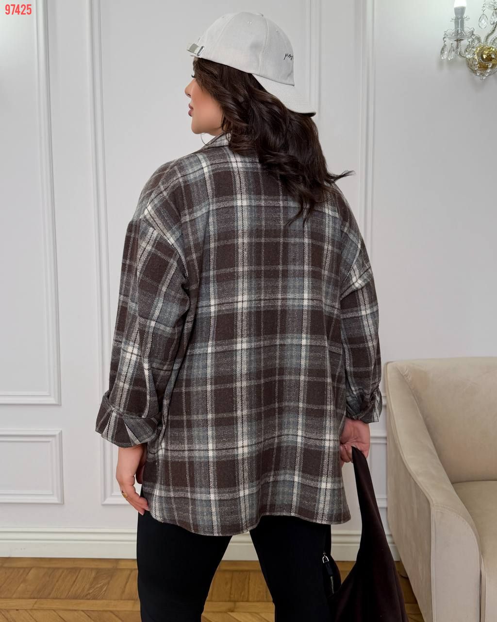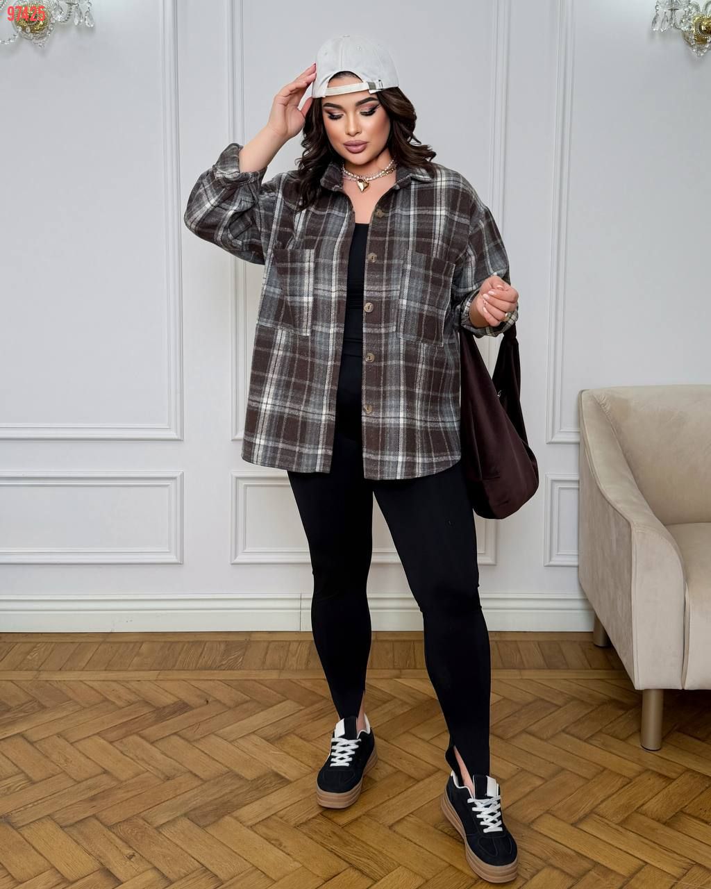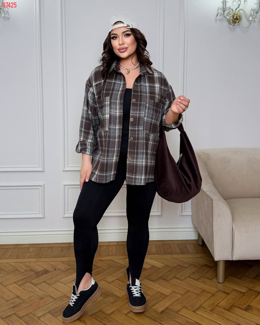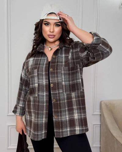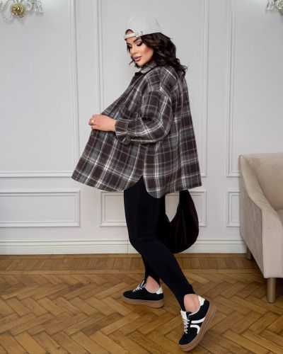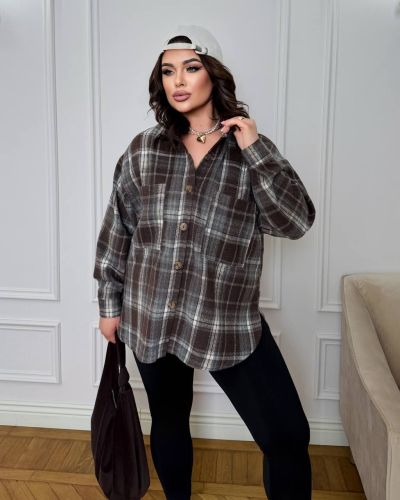 Стильна сорочка в клітинку шоколад №97425