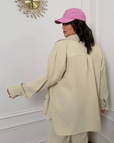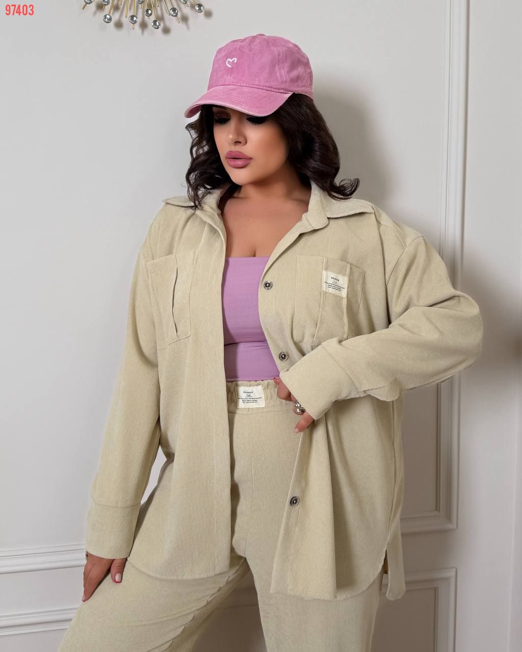 Стильний прогулянковий костюм із мікровельвету: Сорочка вільного крою на гудзиказ, з робочими кишенями + джогери з високою посадкою з кишенями у бічних швах. На поясі та знизу на гумці.