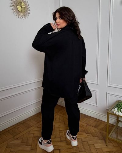 Стильний прогулянковий костюм із мікровельвету: Сорочка вільного крою на гудзиказ, з робочими кишенями + джогери з високою посадкою з кишенями у бічних швах. На поясі та знизу на гумці.