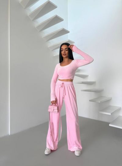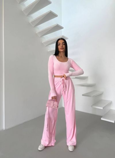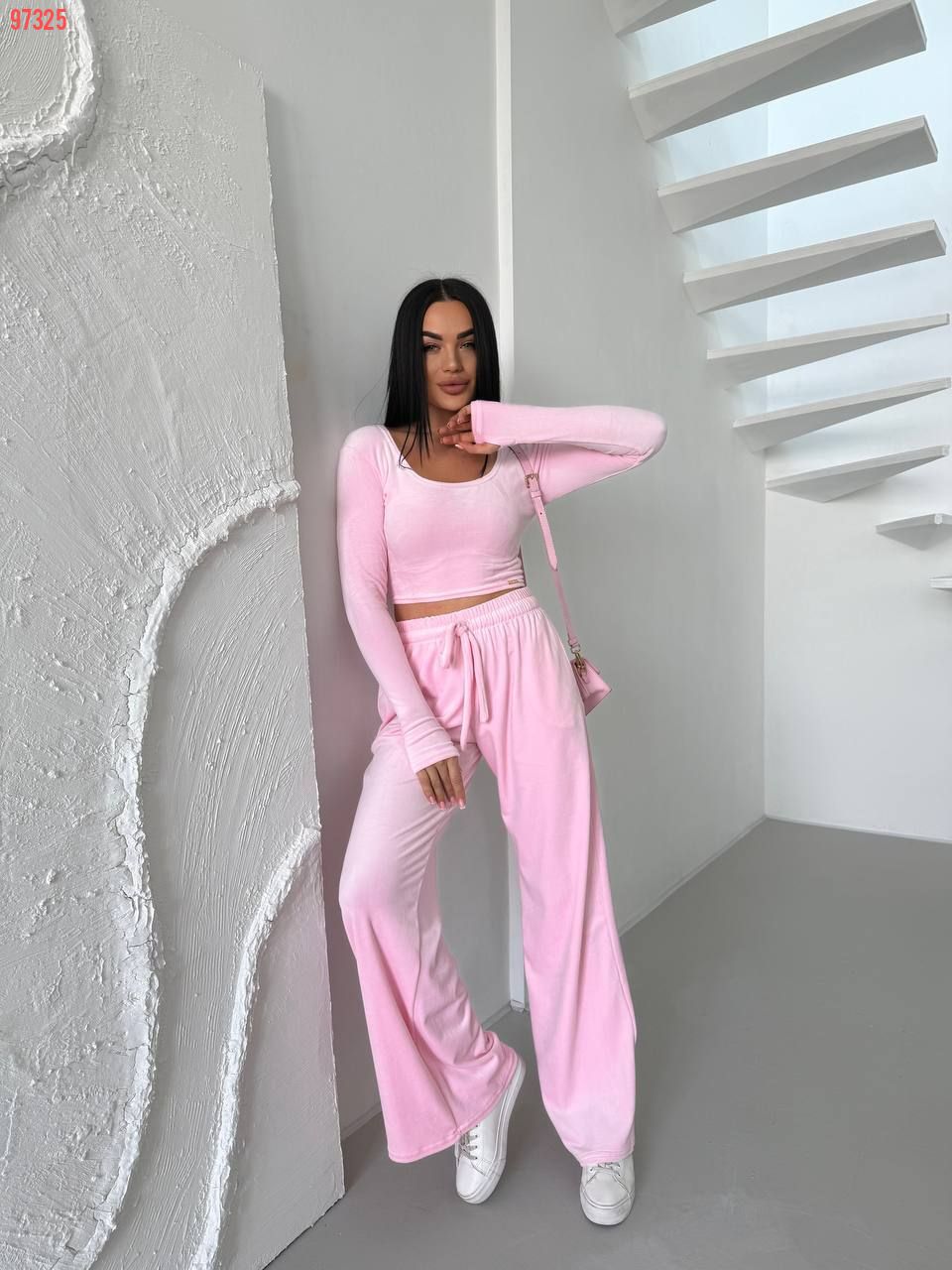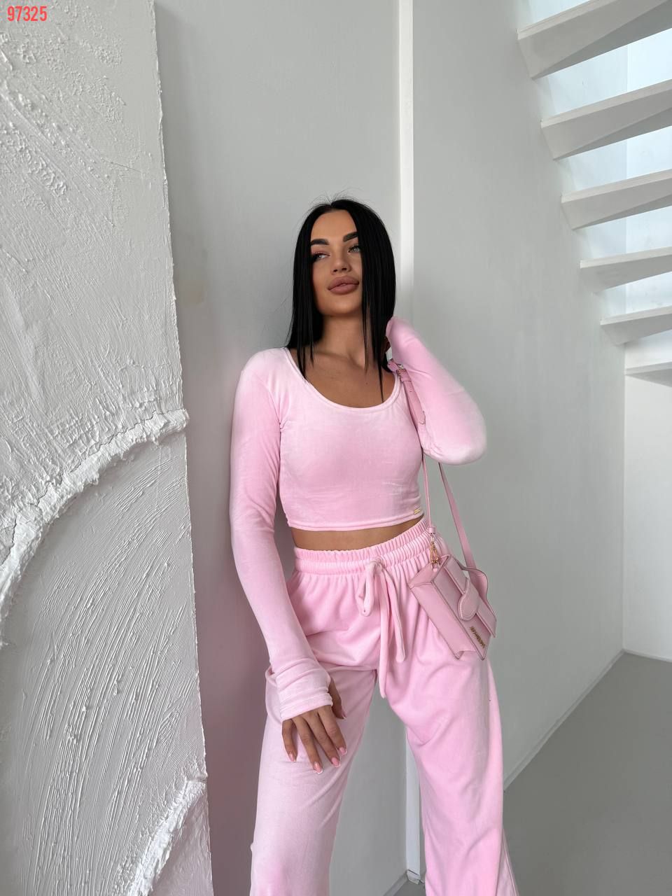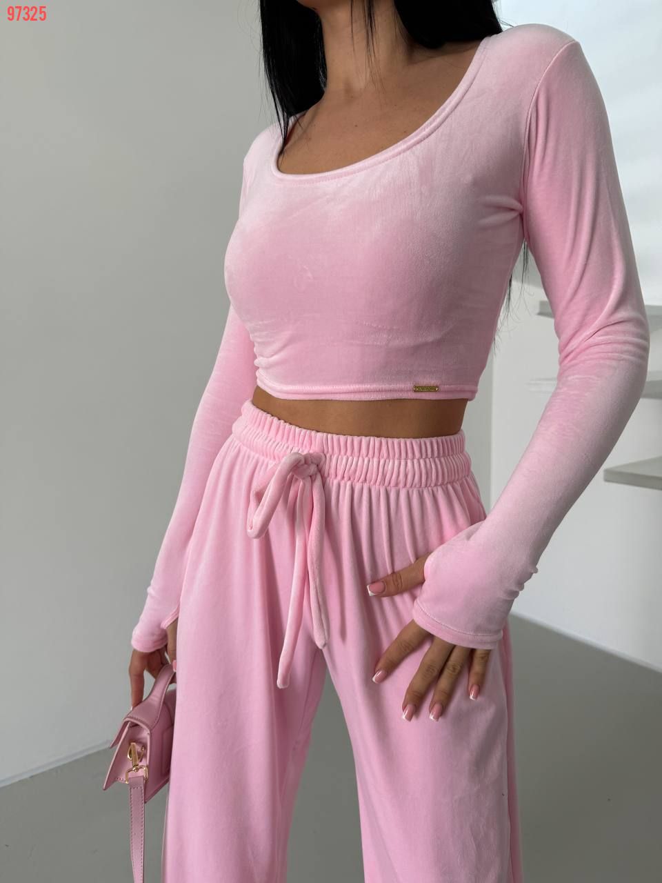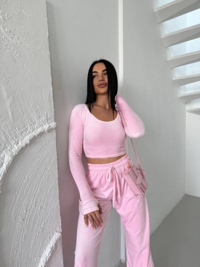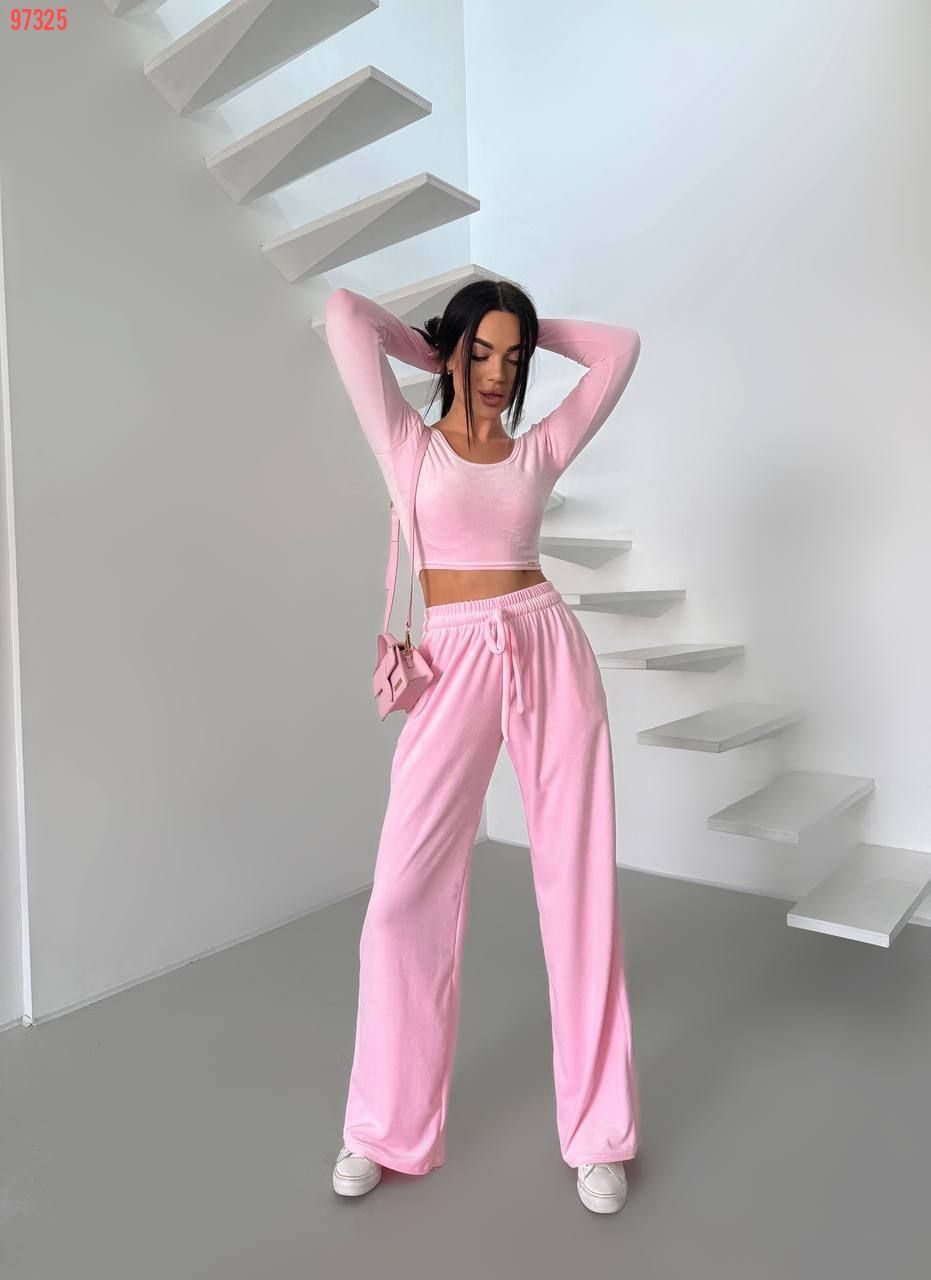 Стильний практичний костюмчик з велюру рожевий №97325