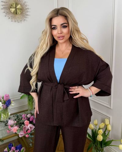 Стильний прогулянковий костюм зі льону «Бохо» шоколад №97543