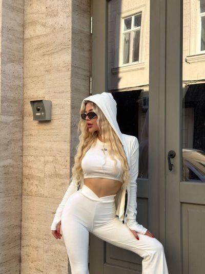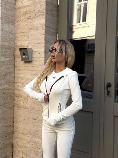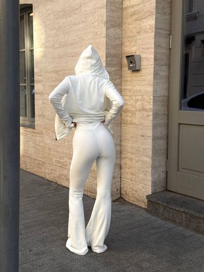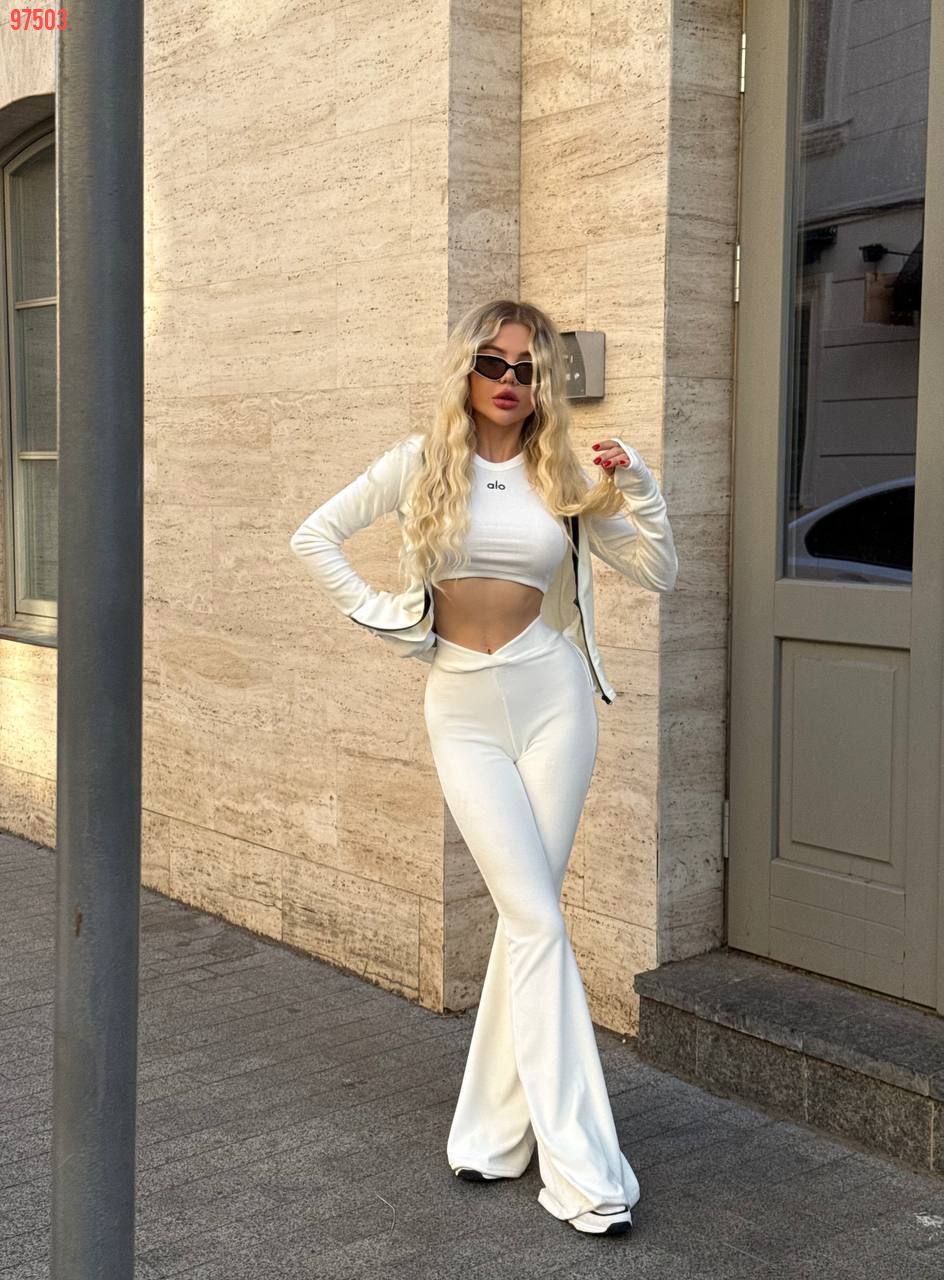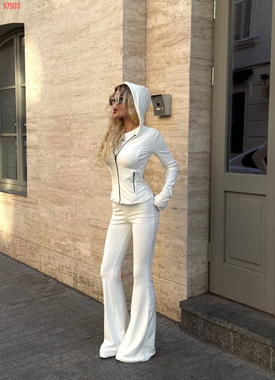 Стильний та комфортний костюм із мʼякого велюру білий №97503