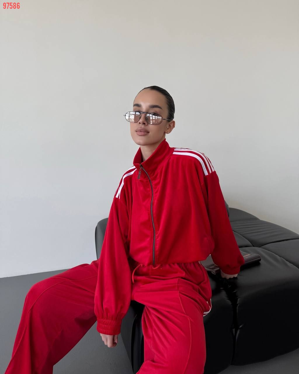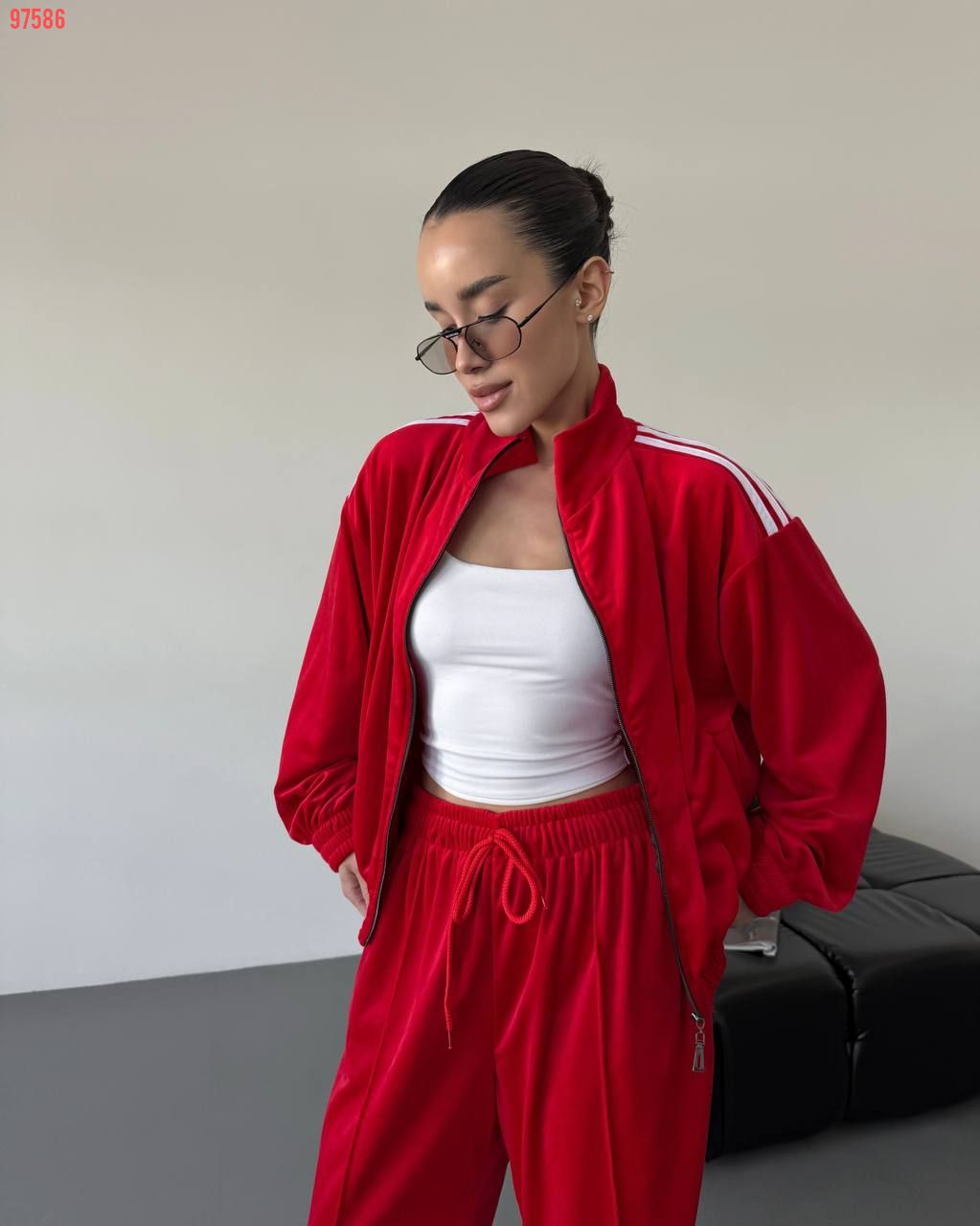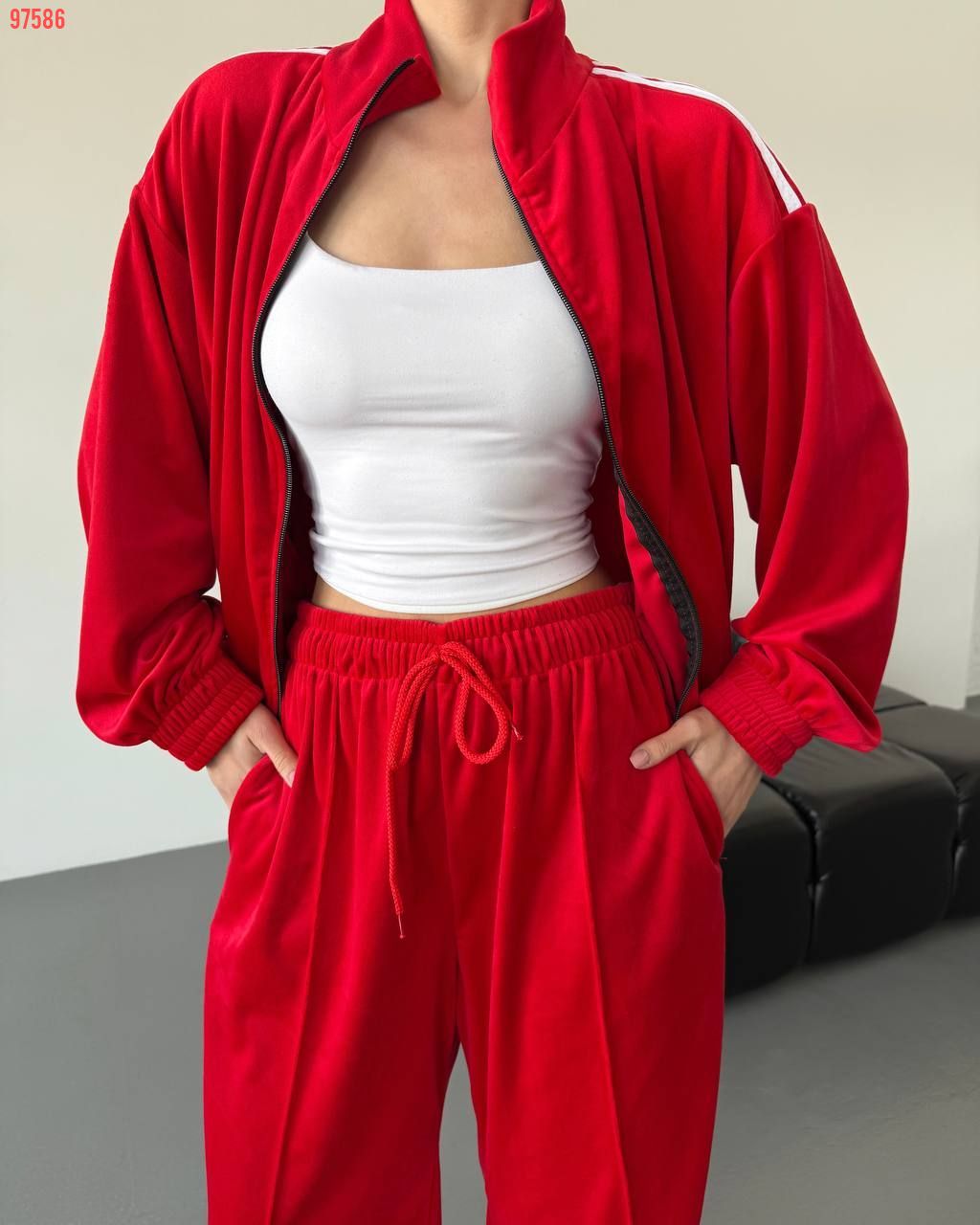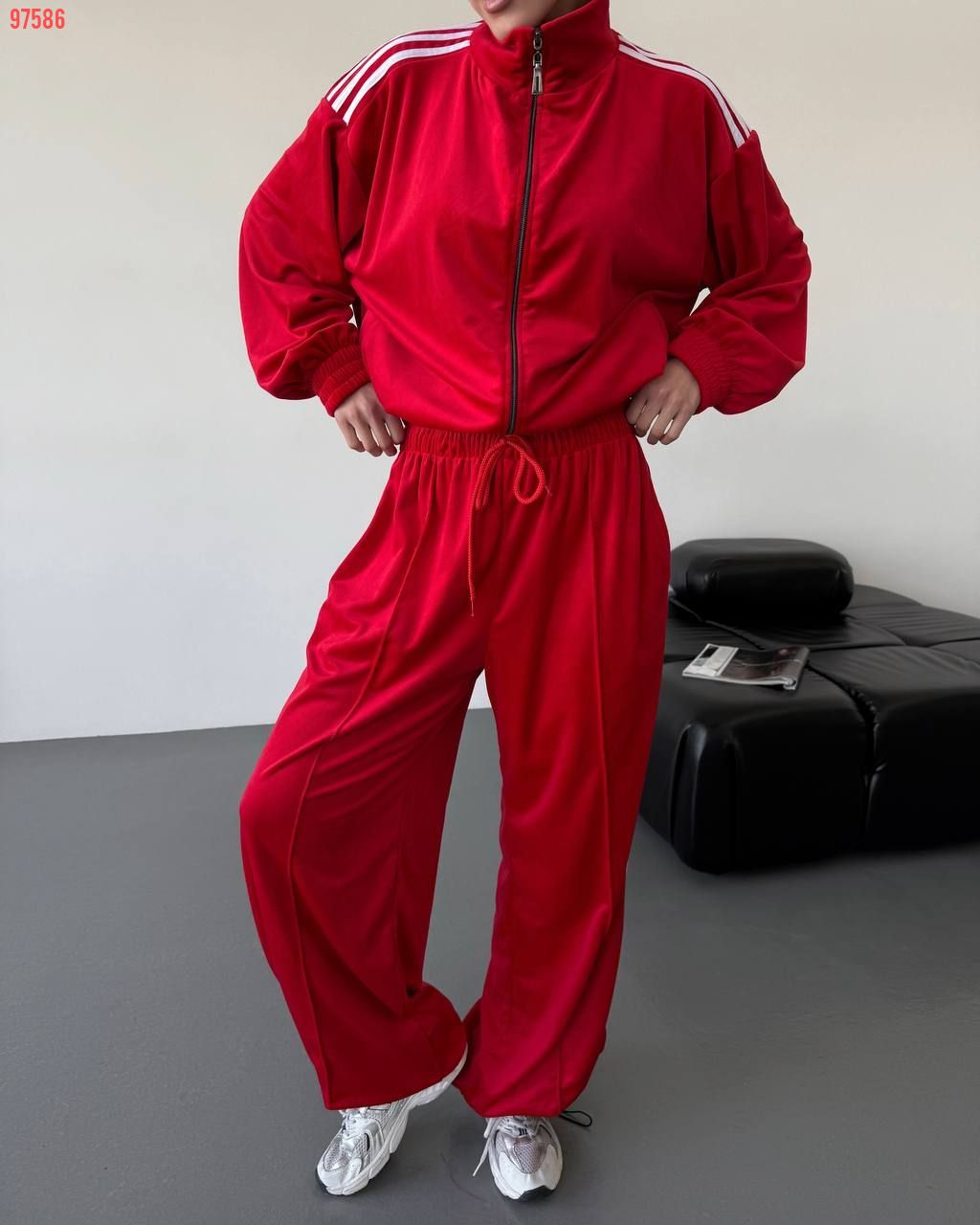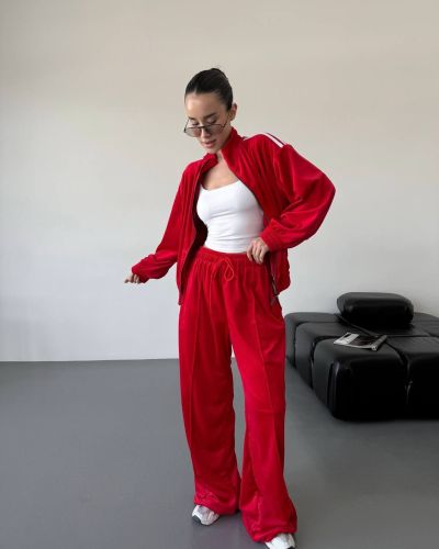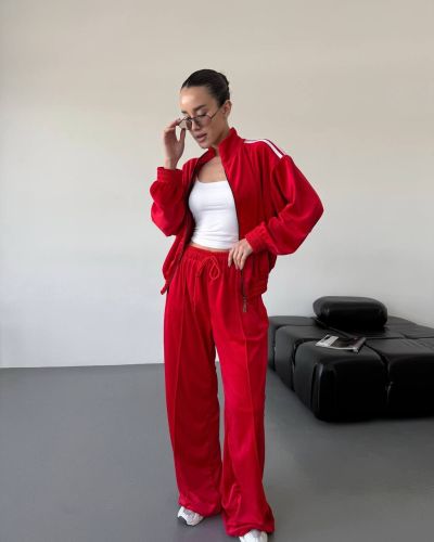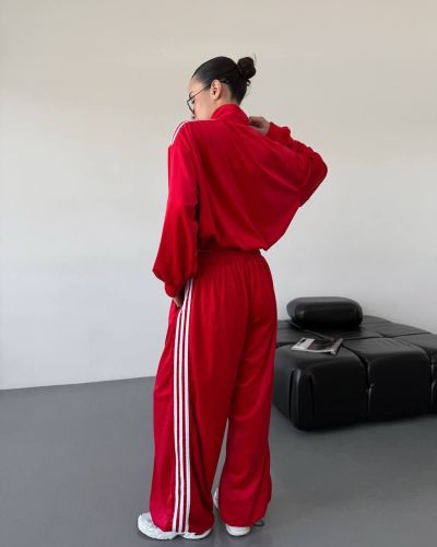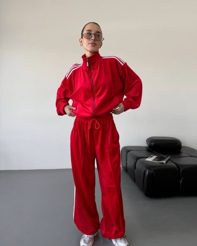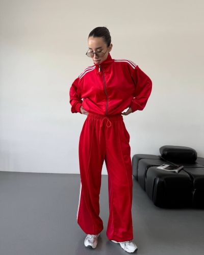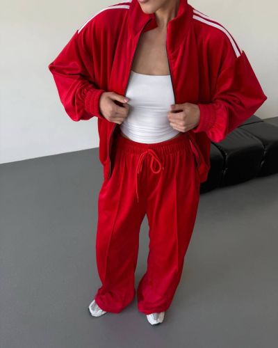 Стильний зручний костюм з лампасами на змійці червоний №97586