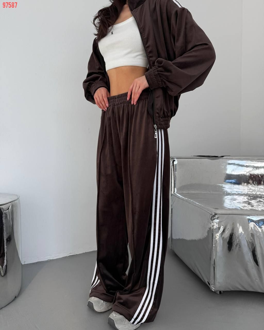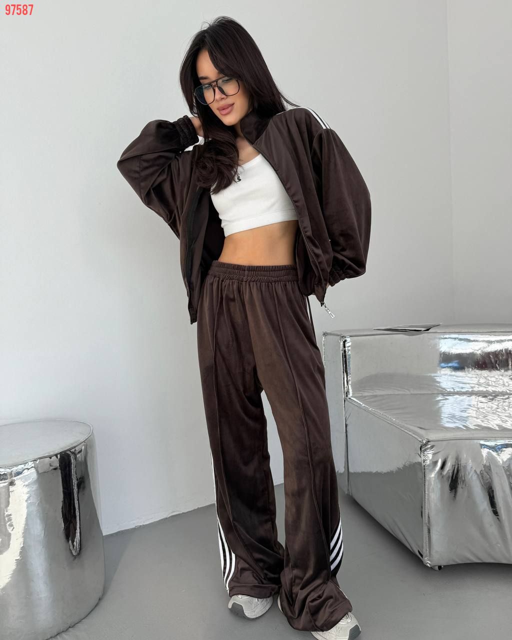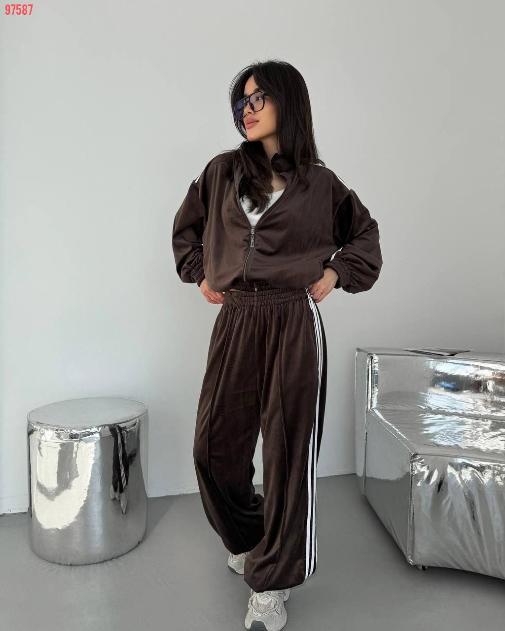 Стильний зручний костюм з лампасами на змійці шоколад №97587