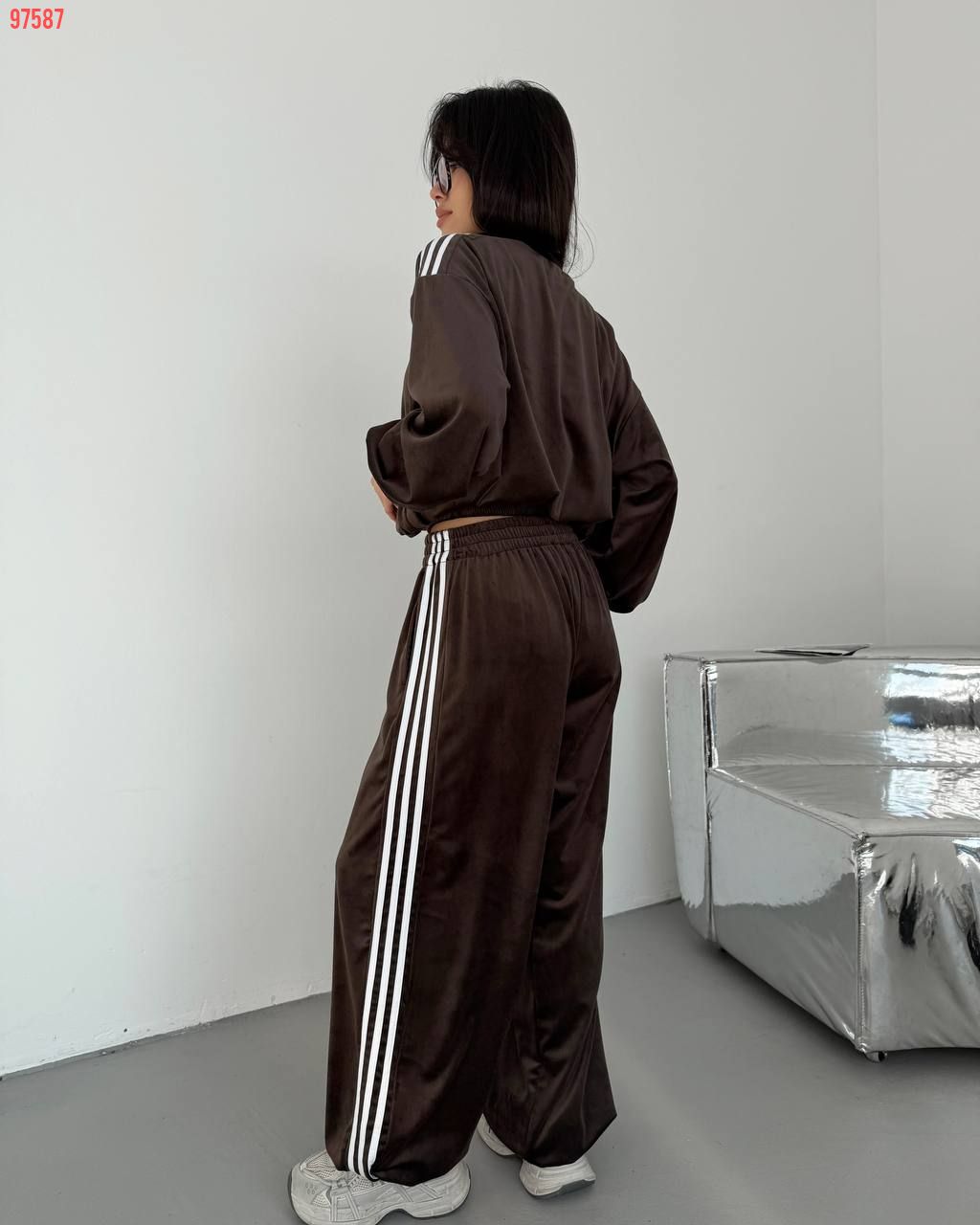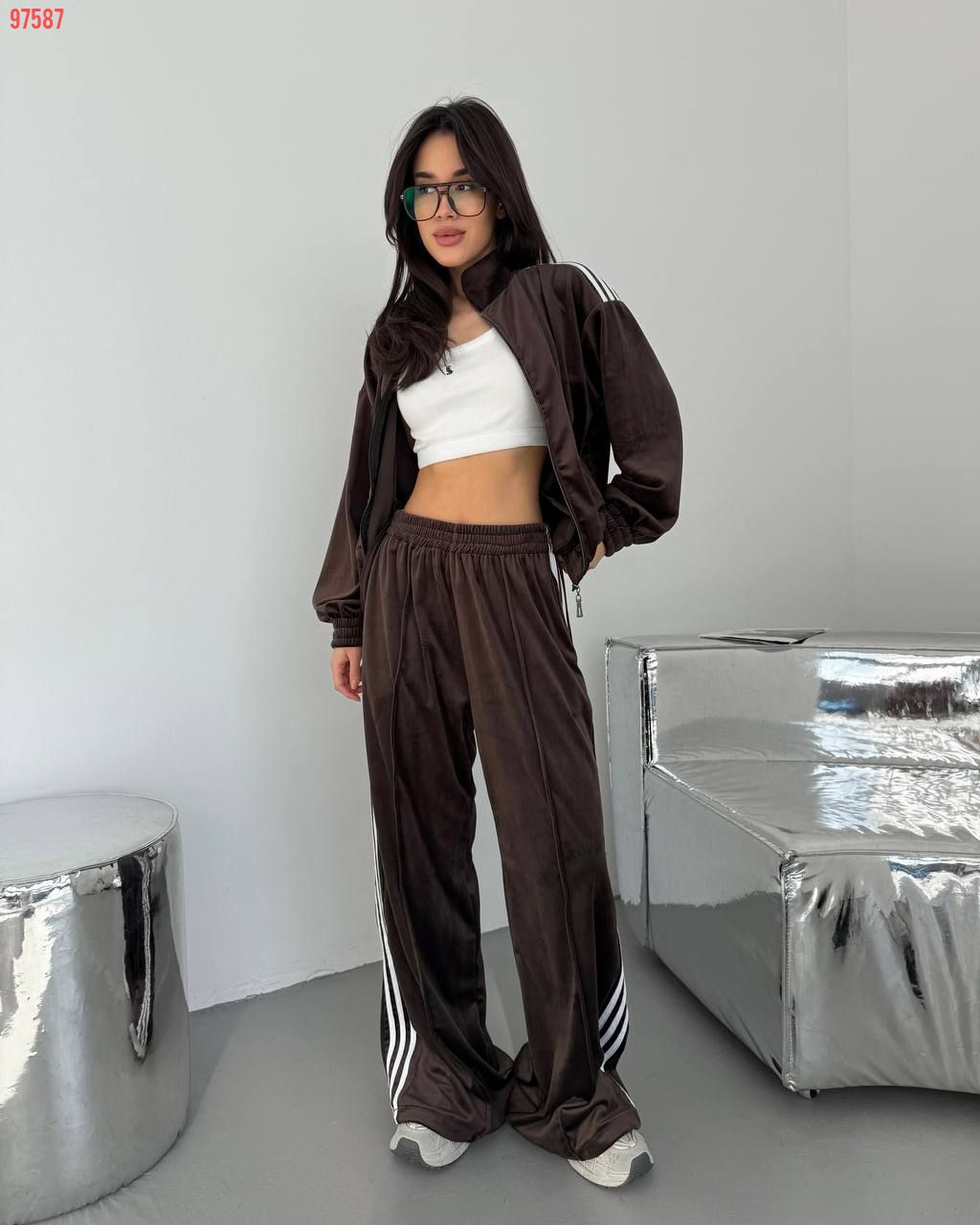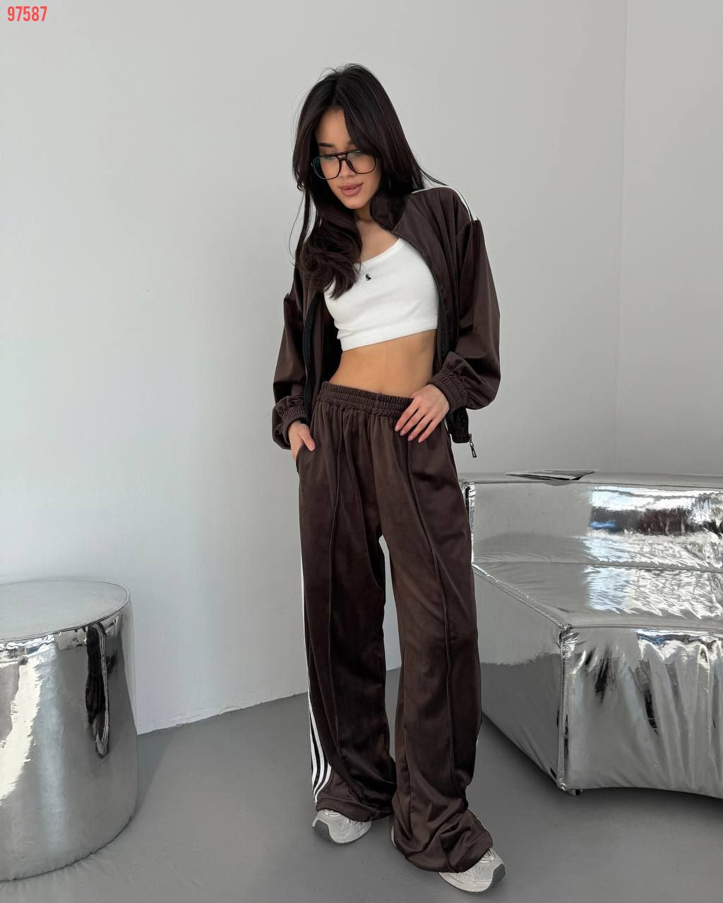 Стильний зручний костюм з лампасами на змійці шоколад №97587