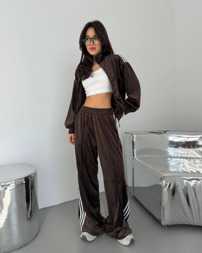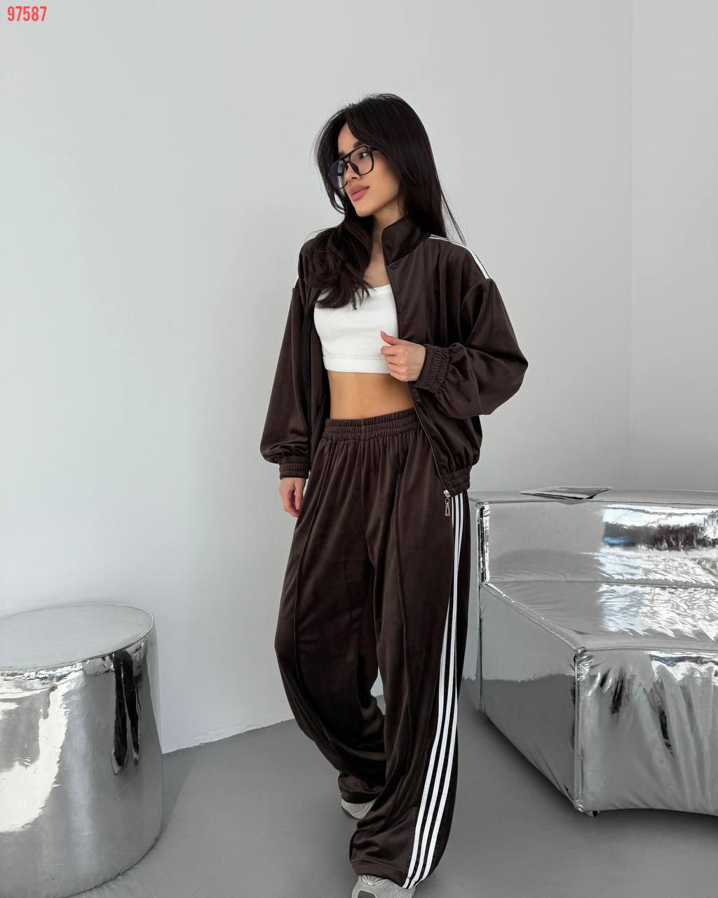 Стильний зручний костюм з лампасами на змійці, в стилі оверсайз. Мʼякий приємний до тіла велюр. Кофта знизу на резиночці. Штани з кишенями та знизу мають фіксатори, для зручності регулювання.