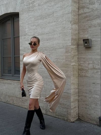 Сукня бежева зі зйомною шалью - шик, комфорт, і не скінченні експерименти №97665