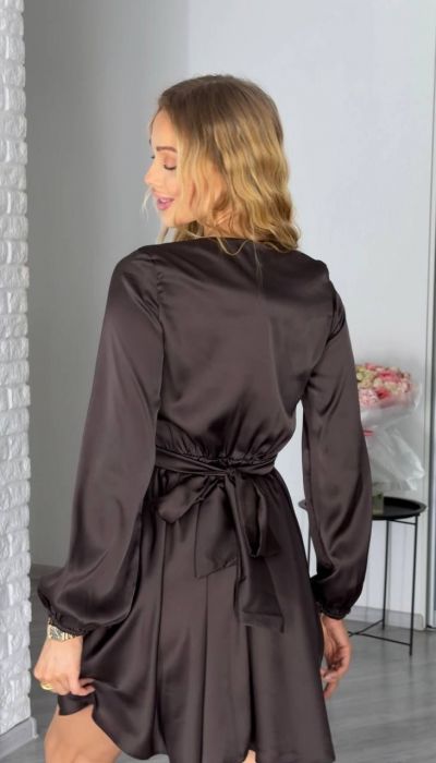 Ніжна , жіночна, легка сукня , яка ідеально підкреслить твою красу Імітація запаху на талії , створює V подібний виріз, і підкреслює фігуру