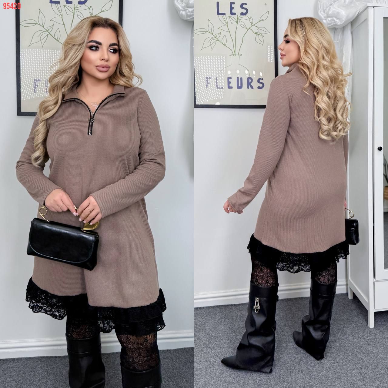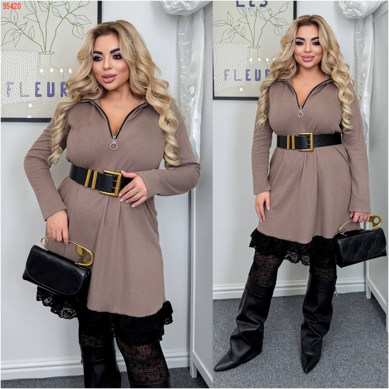 Тепла сукня покрою трапеція , з стойкою на блискавці , низ гепюр .