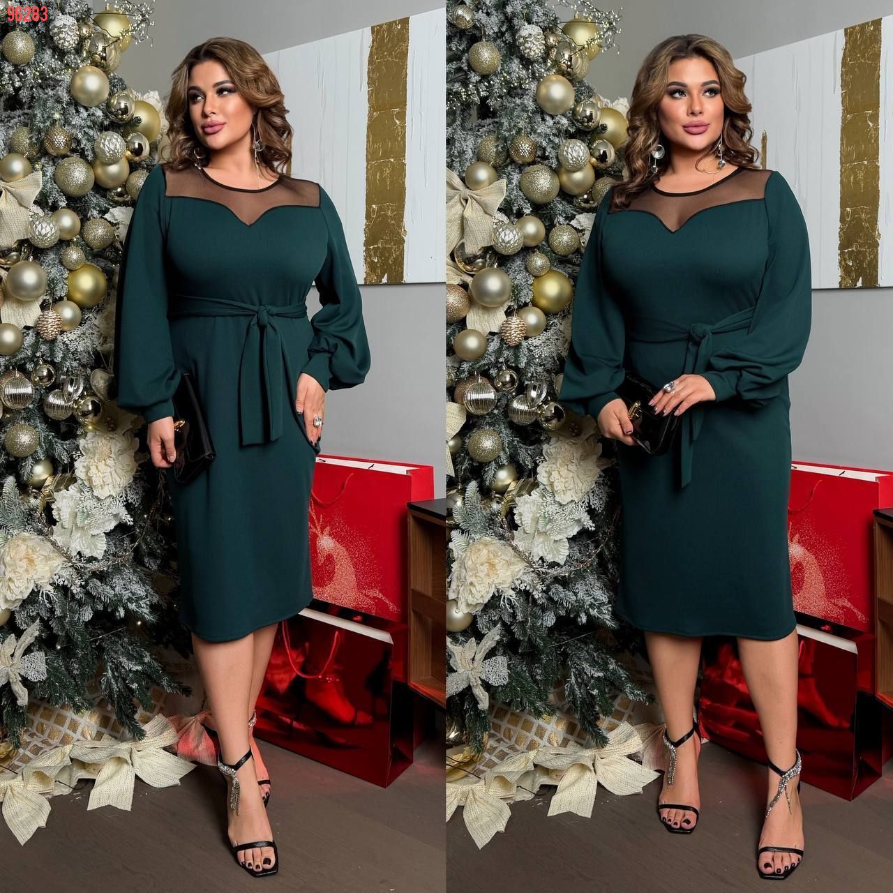 Святкова сукня з широкими рукавами на манжеті , пояс з основної тканини .