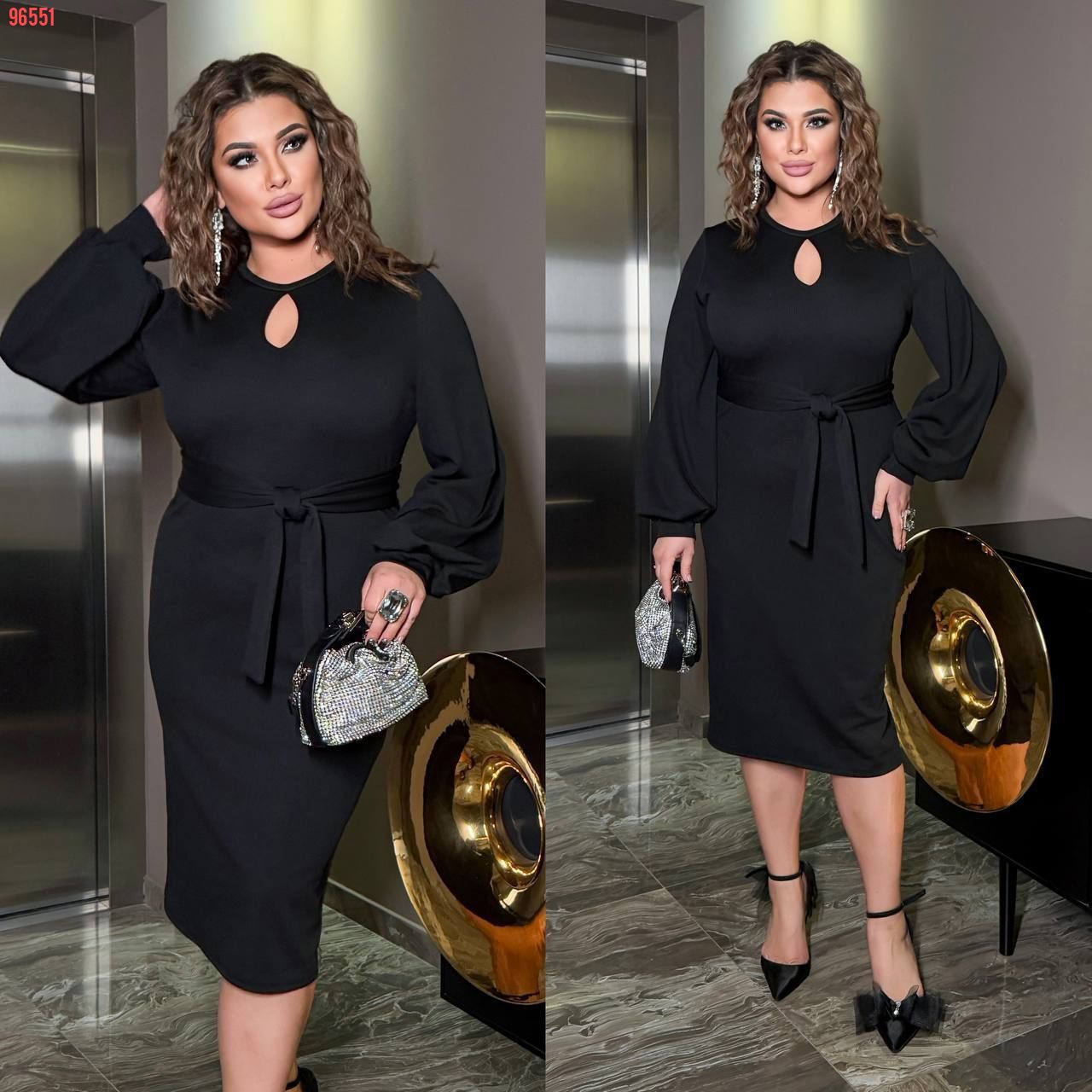 Святкова сукня з широкими рукавами на манжеті , пояс з основної тканини .