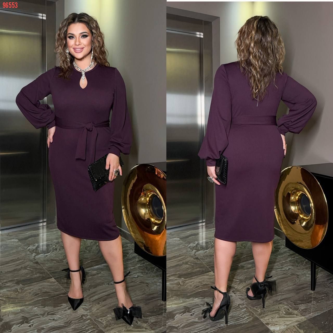 Святкова сукня з широкими рукавами на манжеті , пояс з основної тканини .
