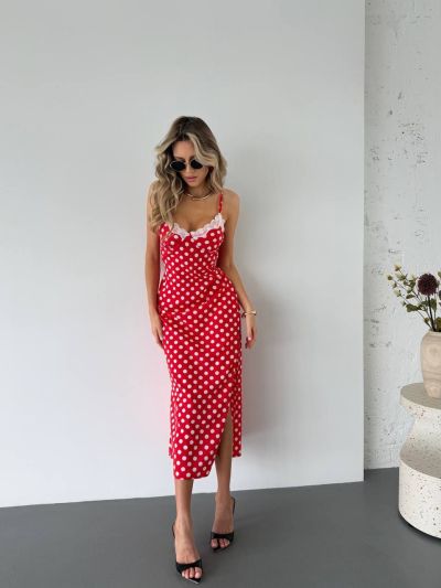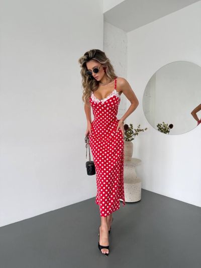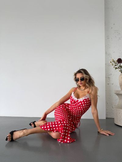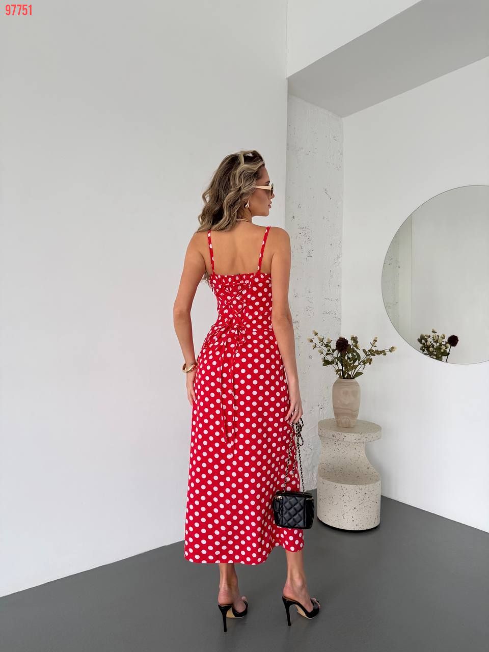 Сукня червона в горошок зі шнурівкою на спинці №97751