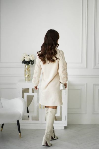 Трикотажна сукня з високим горлом і вишитими рукавами – ідеальне поєднання тепла та елегантності.