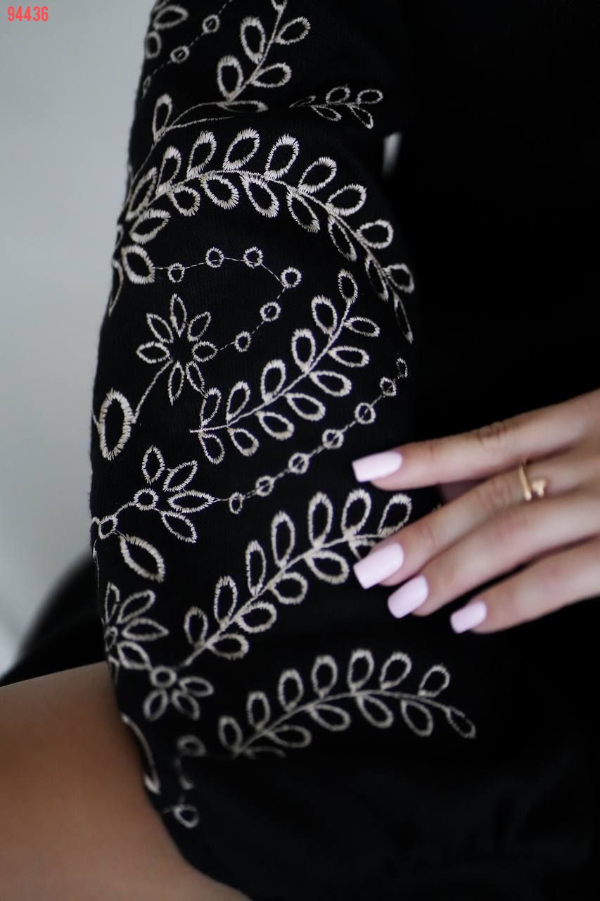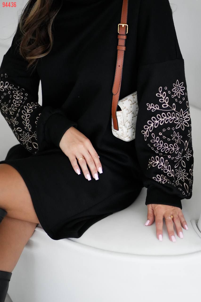 Трикотажна сукня з високим горлом і вишитими рукавами – ідеальне поєднання тепла та елегантності. Завдяки вільному крою та м’якій ангоровій тканині модель комфортна у щоденному носінні, а вишивка додає витонченості й оригінальності.