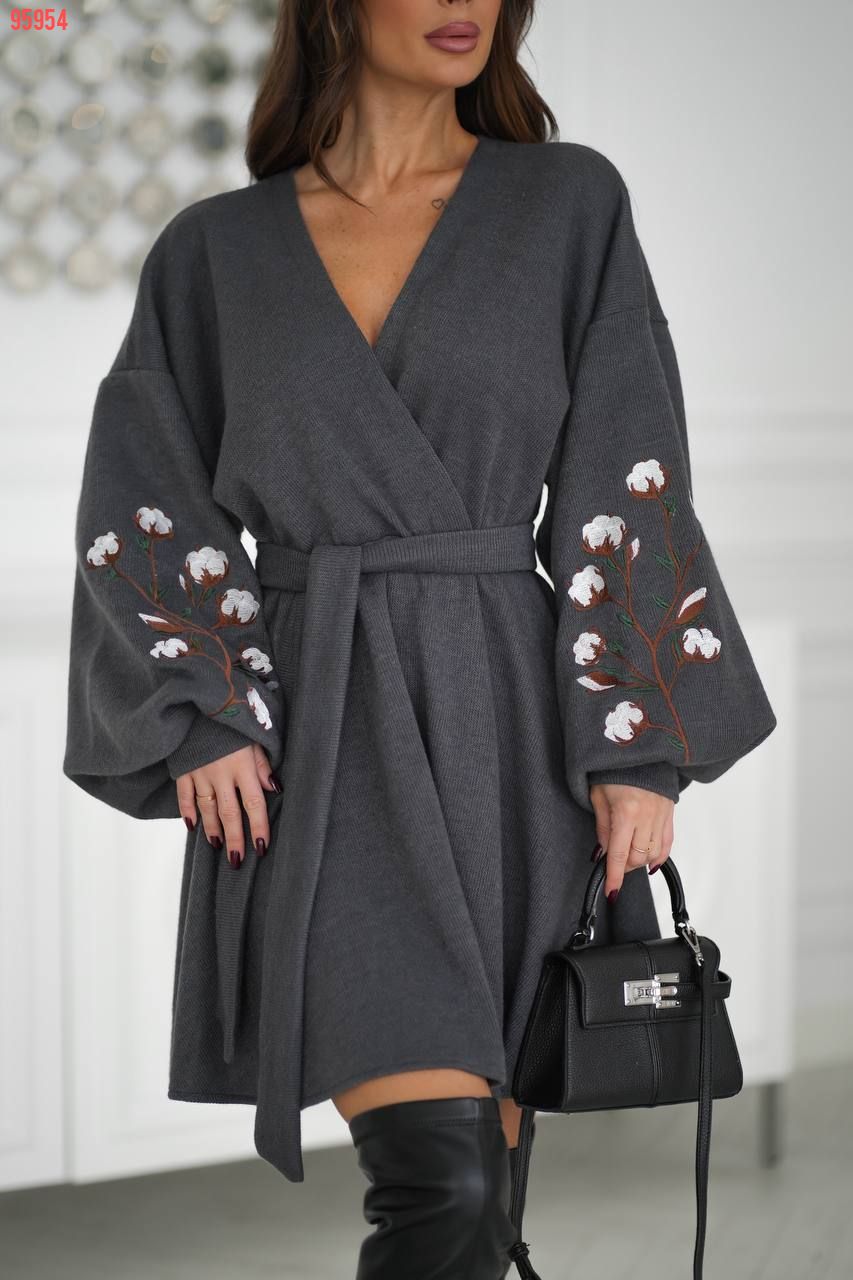 Рукав: об’ємний, на манжеті, з квітковою вишивкою «бавовна»