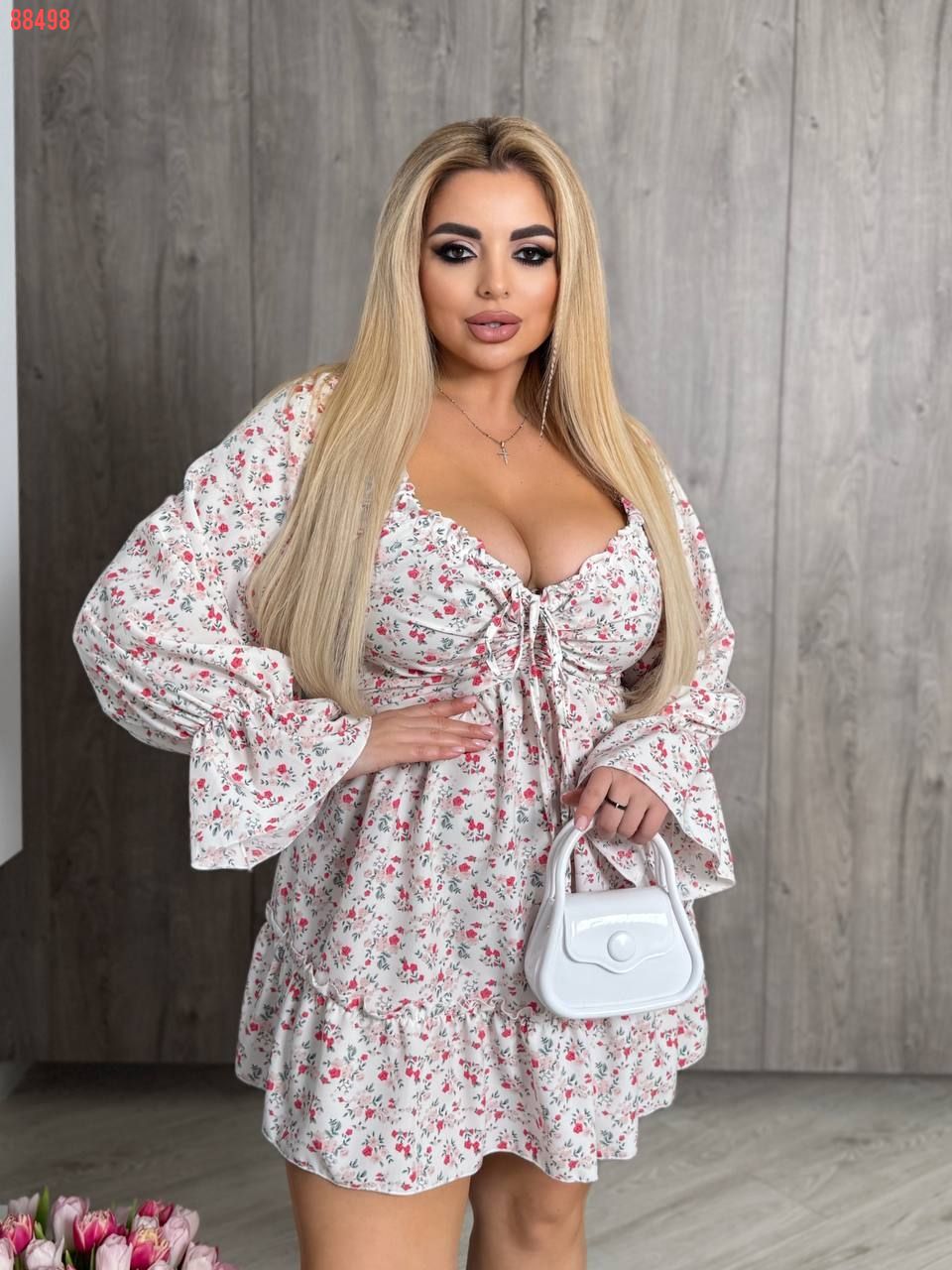 Ідеально сідає на фігурі. Довжина 87 см. Гумка на плечах розтягується при Одяганні довжина може бути 92 см. Якщо мотузочку попереду трохи затягнути - довжина буде 85 см.