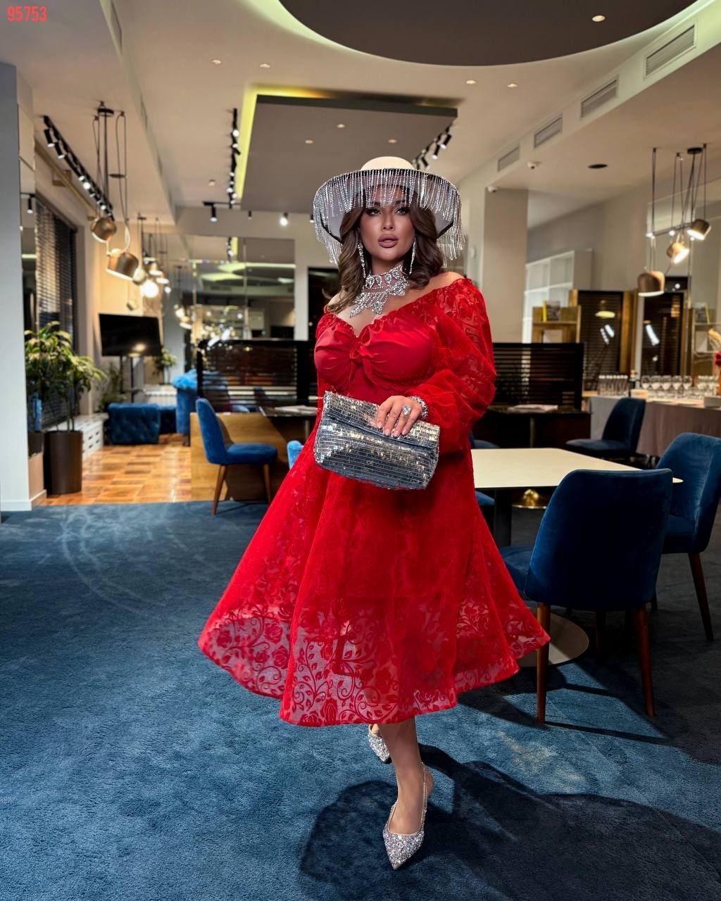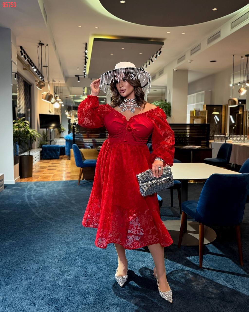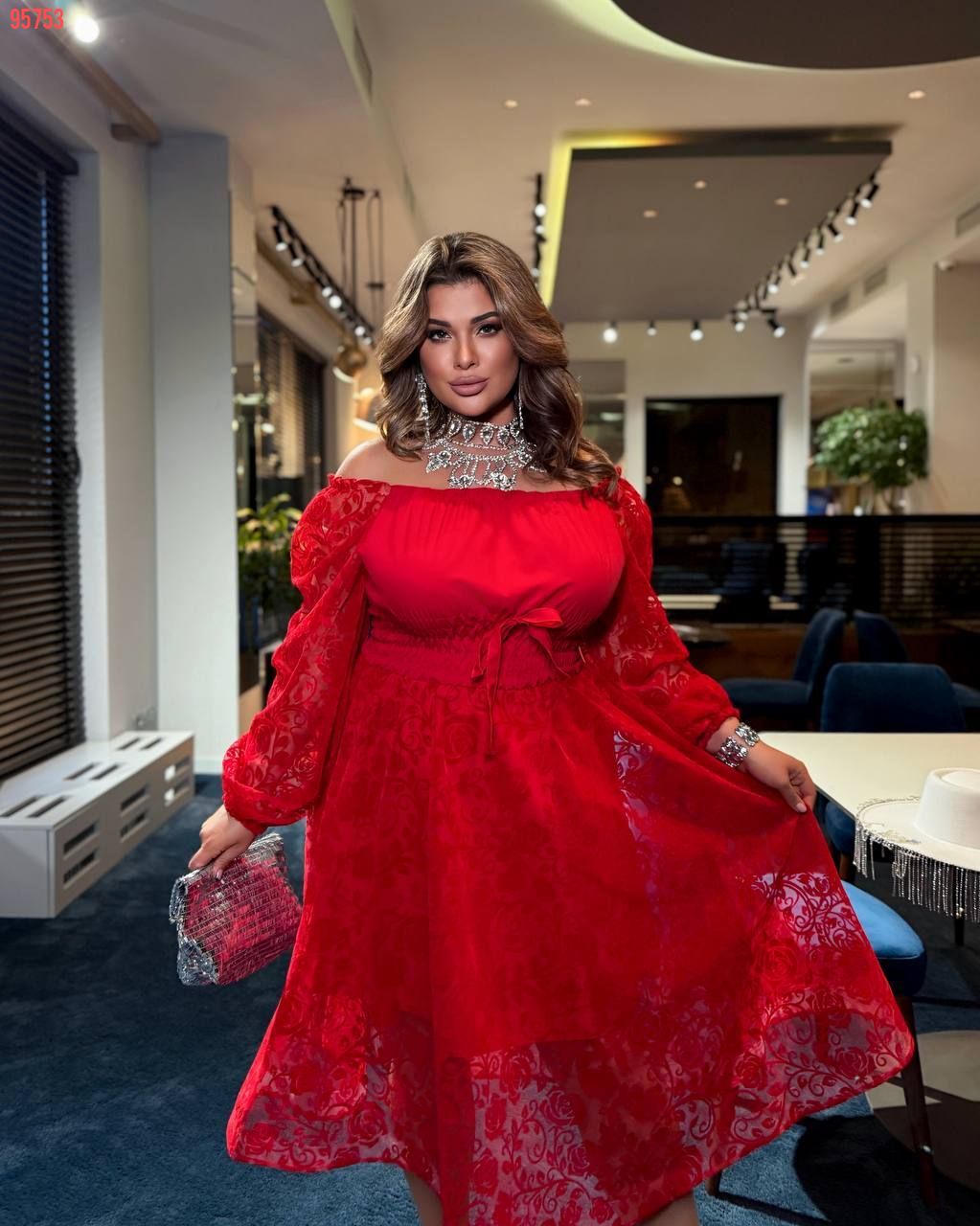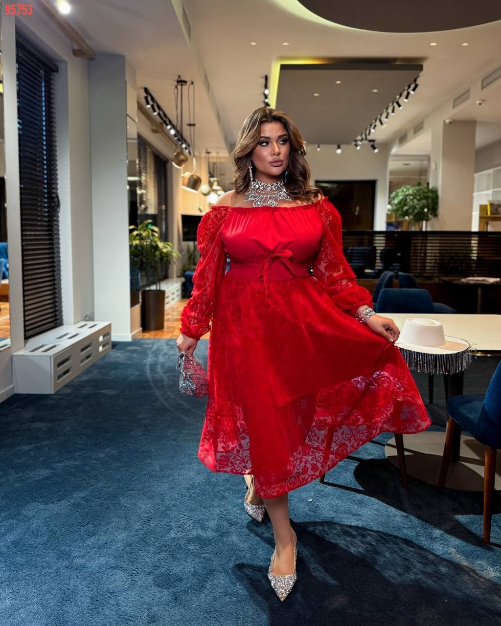 Під грудьми зав’язка, що дозволяє створити два різні образи: з відкритим декольте для романтичного вигляду із закритим декольте для стриманого стилю Низ сукні ущилен регіліном – створює трендовий силует