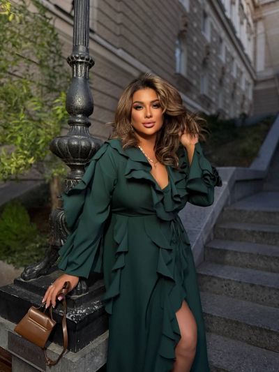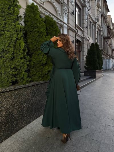 Довжина 143см, одягається на запах. Ідеальна посадка. Спідниця-напівсонце – не повнить. Легке, приємне до тіла. Прикрашення- паси - Тренд цього сезону. Вони роблять сукню повітряною , додають шарму