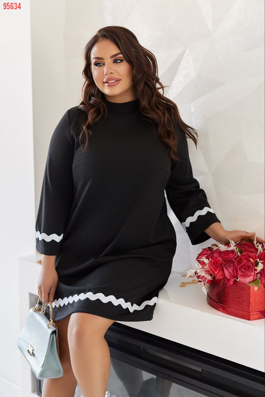 Стильна, лаконічна сукня виготовлена з якісного італійського трикотажу. Виріб прикрашено хвилястим білим кантом по подолу та рукавам. А-образний сілует виглядає завжди виграшно та приховує недоліки. Позаду блискавка для зручного одягання.