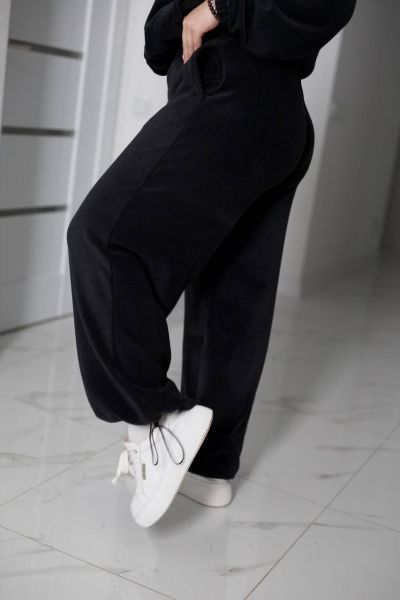 Штани -висока посадка, з кишенями, пояс на резинці, силует : прямий, вільний, низ штанин оснащений декоративним регулятором-стопером, який дозволяє змінювати ширину – від прямої до злегка стягнутої.