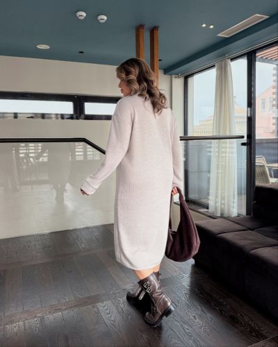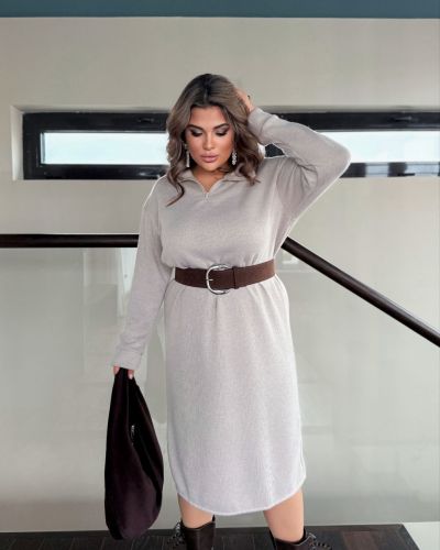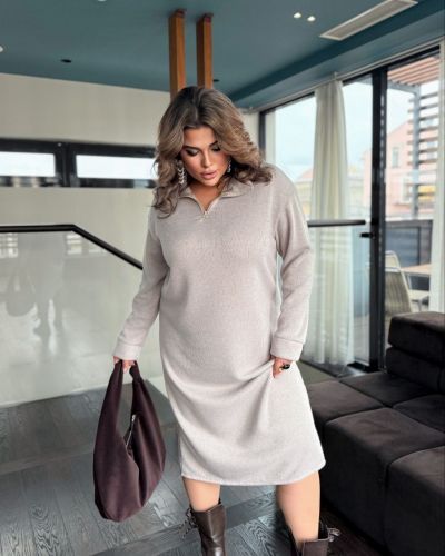 Осінньо-зимова тепла прогулянкова сукня. Сукня, довжина нижче коліна, з довгим рукавом, комір стояка, попереду змійка