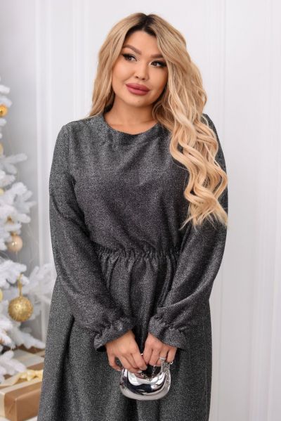 58-60 ОГ 116 см, талія не в розтягнутому стані 45 см, дл рукава 65 см, довжина сукні 103 см, бедра 140 см.