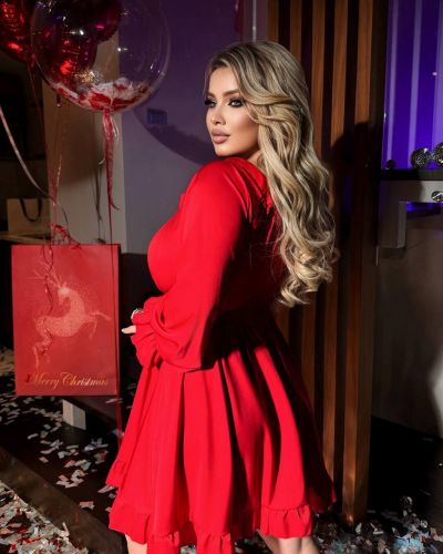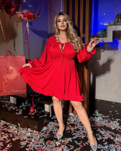 Сукня з костюмного шовку з ніжними рюшами та акуратною зборкою по грудях – це модель, яка закохує з першого погляду. Легка хвиля шовкової тканини м’яко лягає по фігурі, створюючи елегантний, витончений силует, а рюші додають образу романтичності та легкої грайливості.