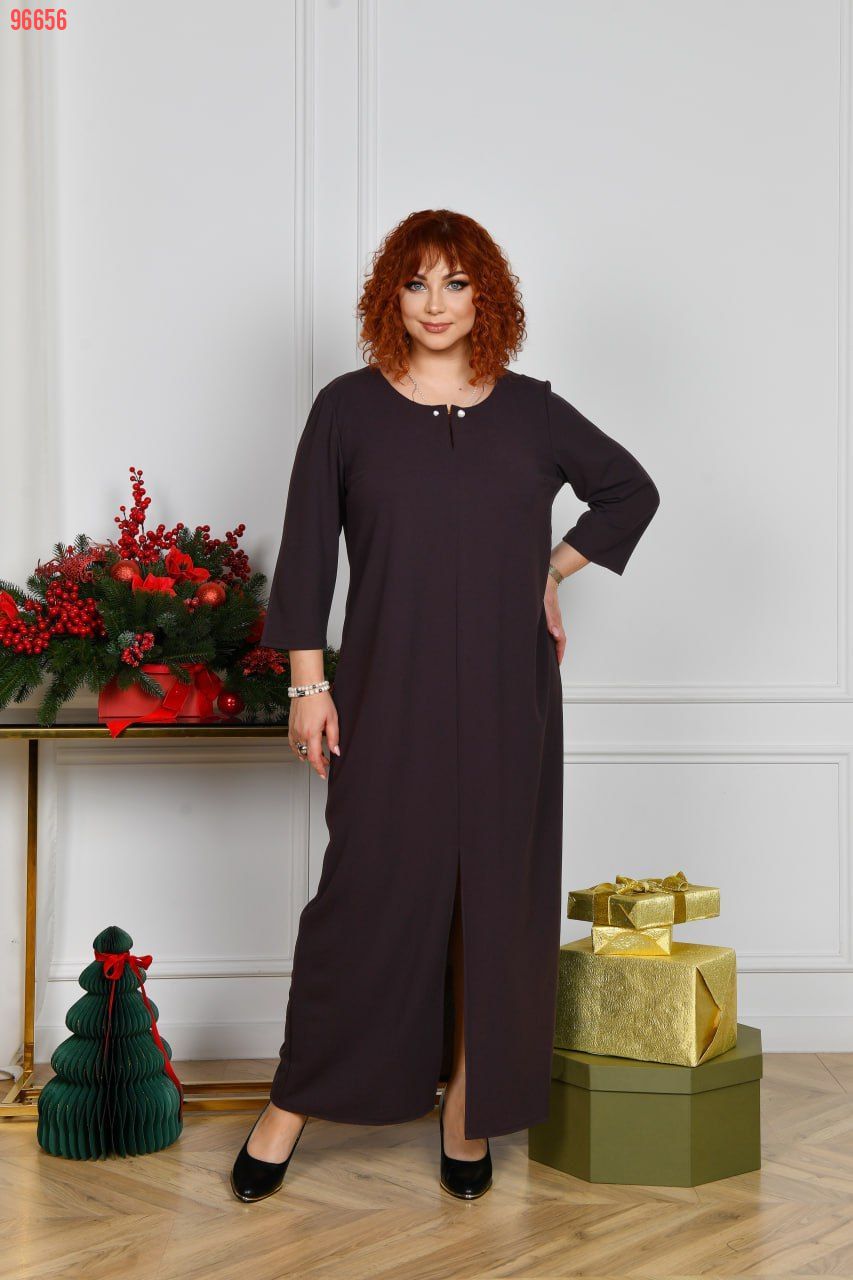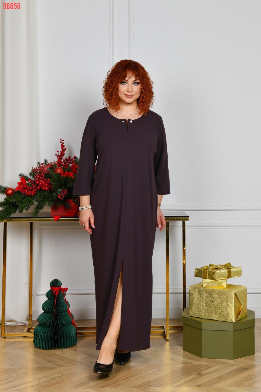 Неймовірно стильна жіночна сукня із трикотажу крепдайвінг (розтяжність середня). Довга сукня вільного прямого силуету з оригінальним вирізом горловини, яка декорована прикрасою з перлинками. Рукав прямий, трохи вкорочений. Попереду внизу оброблено розріз, що додає образу витонченості та стрункості. Застібок, кишень немає. Сукня ідеально підійде як для свят, так і на кожен день.