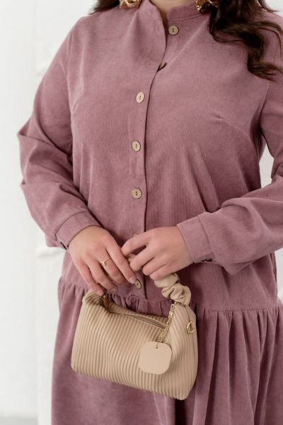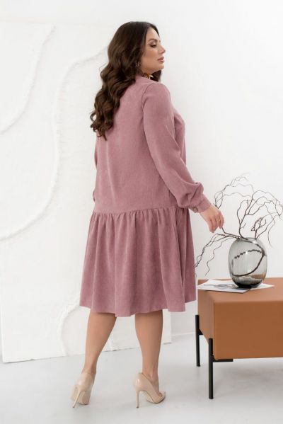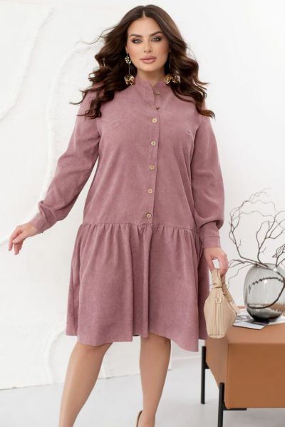 Це жіночна сукня, виконана з м'якої вельветової тканини, зробить ваш образ стильним, модним і вишуканим. Модель доповнена коміром-стійкою, довгими рукавами з манжетами і повітряним грайливим воланчиком, підшитим до подолу, а також кишеннями. Сукня застібається на ряд гудзиків спереду по центру.