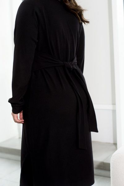 Мінімалістична жіночна сукня, виконана з м'якої ангорової тканини, здатна надати силуету вашої фігури м'якості і природності. Модель прямого силуету доповнена довгими рукавами "реглан" з манжетами, а також фігурним вирізом збоку внизу і трохи асиметричним низом, подовженим спереду. Родзинкою цієї сукні є текстильний пояс, вшитий в бокові шви, за допомогою якого ви можете змінювати свій образ, зав'язуючи його спереду або ззаду.