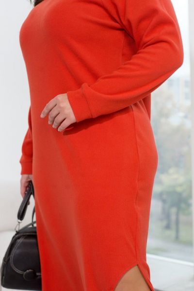 Стильна сукня, виконана з м'якої ангорової тканини, відрізняється універсальністю, а також вдало вписуються в будь-який стиль. Модель лаконічного прямого силуету доповнена довгими рукавами "реглан" з манжетами, а також фігурним вирізом збоку внизу і злегка асиметричним низом, подовженим спереду.