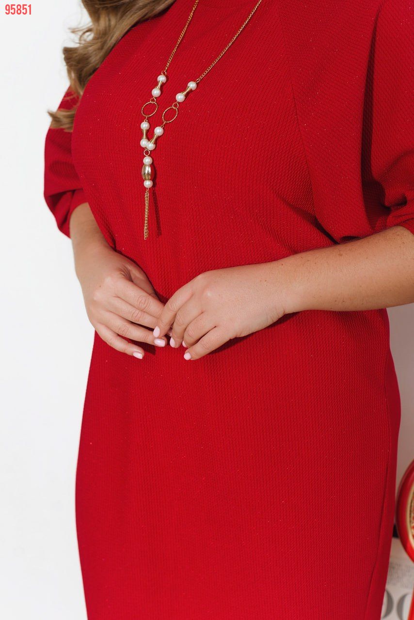 Ця стильна сукня створена, щоб зачаровувати та дарувати святковий настрій. Її оригінальний дизайн підкреслить вашу чарівність, перетворивши вас на зірку будь-якого заходу. Вільний крій у стилі "летюча миша" додає образу легкості та витонченості, створюючи вигляд невимушеної елегантності. Модель виготовлена з комфортного креп-дайвінгу, а рукави прикрашені вишуканими блискітками, які граційно переливаються при кожному русі й виблискують у світлі. На рукавах передбачені акуратні манжети, а вздовж усієї сукні позаду проходить елегантний шов. Ця сукня подарує вам не лише стильний образ, але й чарівні моменти незабутнього святкового вечора.