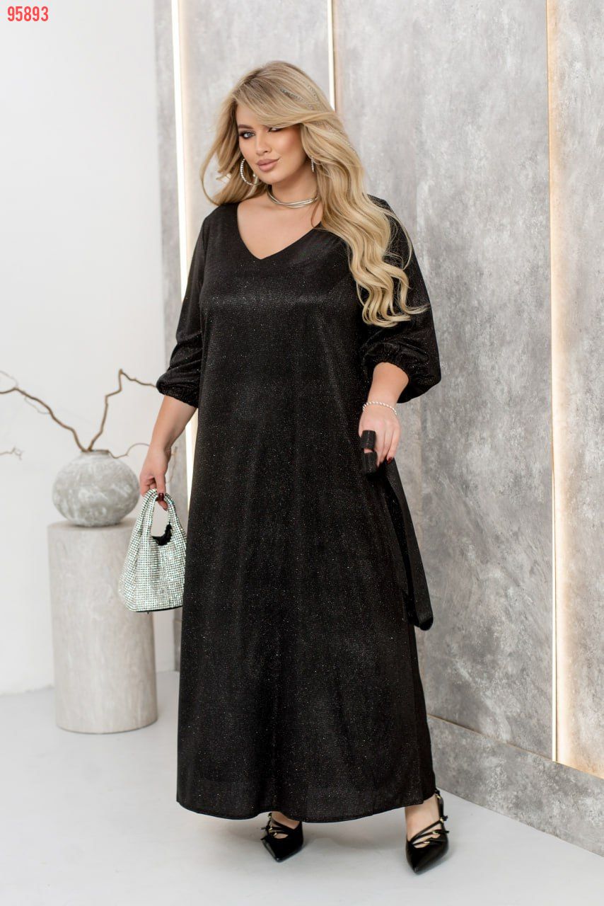 Святкова максі-сукня, яка стане справжнім втіленням розкоші та стилю! Вся модель сяє завдяки розкішним блискіткам, привертаючи увагу з першого погляду. Зручні рукави три чверті на гумці додають практичності, а неглибокий V-подібний виріз горловини підкреслює жіночність і витонченість. Спинка оздоблена елегантним швом уздовж усієї довжини, що додає сукні ще більше вишуканості. Для максимального комфорту модель оснащена трикотажною підкладкою. У комплекті йде текстильний пояс, що допоможе вигідно акцентувати талію. Ця сукня стане ідеальним вибором для святкових подій, де ви прагнете виглядати бездоганно.