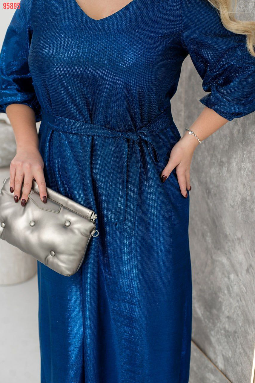Святкова максі-сукня, яка стане справжнім втіленням розкоші та стилю! Вся модель сяє завдяки розкішним блискіткам, привертаючи увагу з першого погляду. Зручні рукави три чверті на гумці додають практичності, а неглибокий V-подібний виріз горловини підкреслює жіночність і витонченість. Спинка оздоблена елегантним швом уздовж усієї довжини, що додає сукні ще більше вишуканості. Для максимального комфорту модель оснащена трикотажною підкладкою. У комплекті йде текстильний пояс, що допоможе вигідно акцентувати талію. Ця сукня стане ідеальним вибором для святкових подій, де ви прагнете виглядати бездоганно.