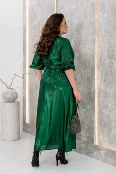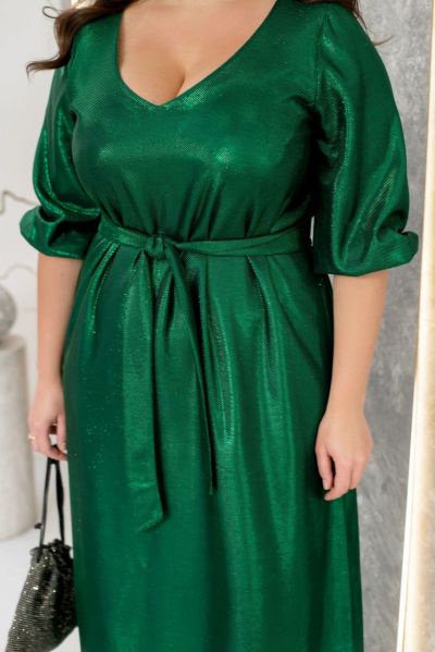 Святкова максі-сукня, яка стане справжнім втіленням розкоші та стилю! Вся модель сяє завдяки розкішним блискіткам, привертаючи увагу з першого погляду. Зручні рукави три чверті на гумці додають практичності, а неглибокий V-подібний виріз горловини підкреслює жіночність і витонченість. Спинка оздоблена елегантним швом уздовж усієї довжини, що додає сукні ще більше вишуканості. Для максимального комфорту модель оснащена трикотажною підкладкою. У комплекті йде текстильний пояс, що допоможе вигідно акцентувати талію. Ця сукня стане ідеальним вибором для святкових подій, де ви прагнете виглядати бездоганно. Текстильний пояс входить в комплект. На моделі представлений розмір 50-52