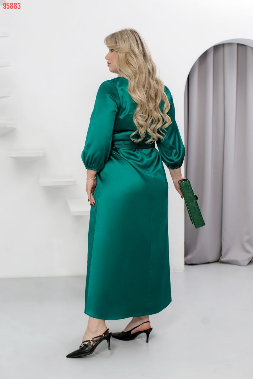 Святкова максі-сукня з шовку, створена для особливих моментів та незабутніх свят, зокрема для зустрічі Нового року. Її елегантний дизайн підкреслює вашу витонченість та жіночність. Зручні рукави три чверті на гумці надають практичності, а неглибокий V-подібний виріз горловини створює граціозний акцент. Акуратні виточки на грудях забезпечують ідеальну посадку, а текстильний пояс, що входить в комплект, дозволяє підкреслити талію. Спинка прикрашена витонченим швом вздовж усієї довжини. Ця сукня – ідеальний вибір для святкової ночі, коли ви хочете виглядати розкішно та відчувати себе особливо.