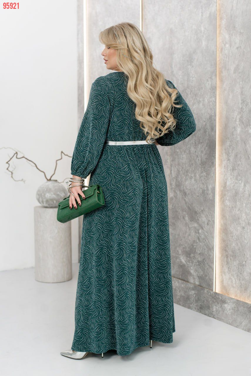 Довга сукня з мерехтливим дизайном – втілення ніжності, жіночності та святкової елегантності. Півкруглий виріз горловини та відрізна лінія талії підкреслюють фігуру, а спадаючі плісовані оборки додають легкості й витонченого руху. Рукави довжиною 3/4 з м’якими резинками на зап’ястках створюють об’єм і делікатний акцент. Вертикальні виточки формують красивий силует, а поясок із комплекту дозволяє обрамити талію, додаючи завершеності образу. Ця сукня м’яко виблискує при кожному русі – ідеальний вибір для особливих моментів, коли хочеться сяяти по-справжньому. Срібний пояс входить в комплект.