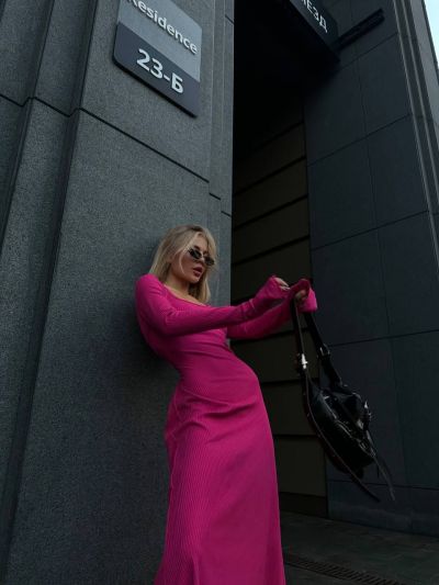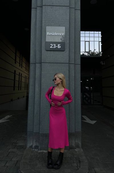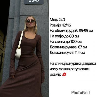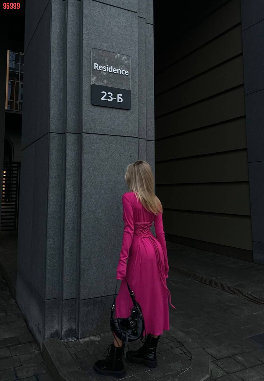 Трикотажна сукня - річ, без якого не обійдется модниця в цьому сезонні. Ми вам пропонуємо ось такий варіант довжини міді, на спині має шнурівку ,завдяки чому, гарно сяде на будь-яку фігурку. З такою сукнею легко створити витончений і жіночий образ
