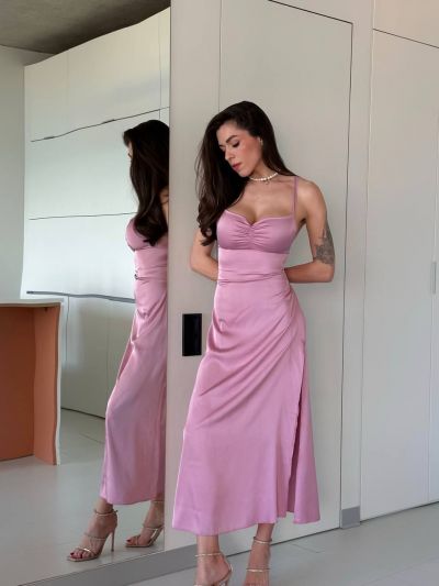 Сукня-комбінація - це втілення елегантності та витонченості. Виготовлена ​​з легких, шовковистих тканин, вона м’яко облягає тіло, створюючи спокусливий та жіночний силует. Завдяки своєму мінімалістичному дизайну, ця сукня є універсальним елементом гардеробу, який можна легко адаптувати до різних подій.