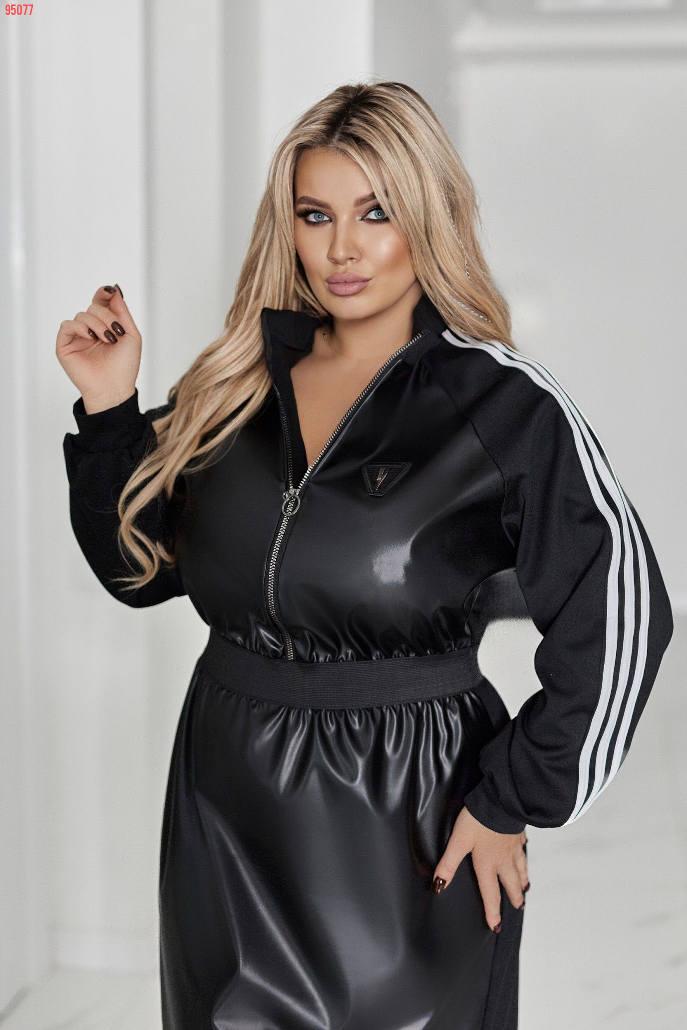 ■ Сукня у спортивному стилі з ефектом двох матеріалів.