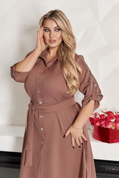 ■ Сукня-сорочка з поясом, комірцем і гудзиками по всій довжині.