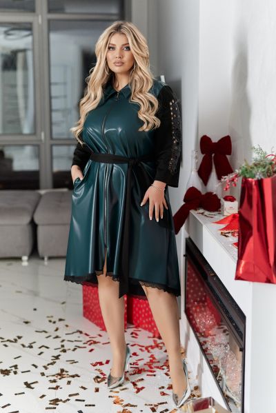 Тканина: Еко шкіра гарної якості + рукава та пояс з Італійського трикотажу + лазерна різка по тканині + стрази DMS + мереживо по низу сукні.