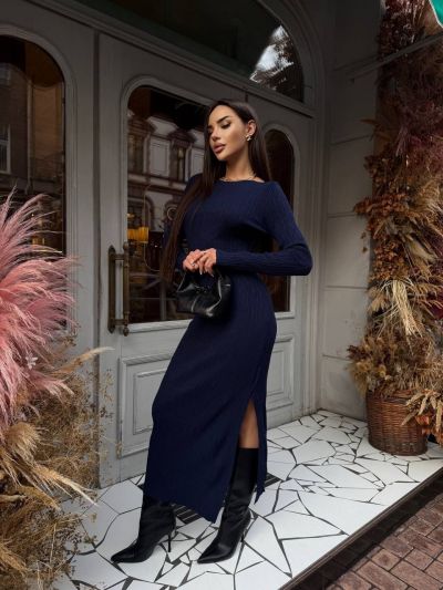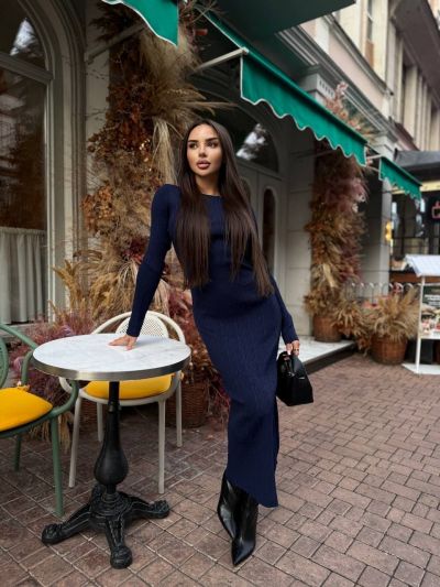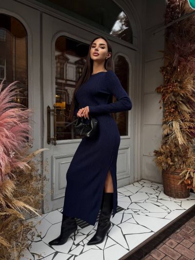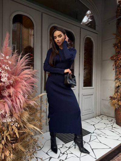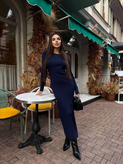 Тканина: Трикотажна сукня максі. Базова модель облягаючого крою з довгим рукавом