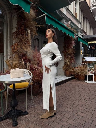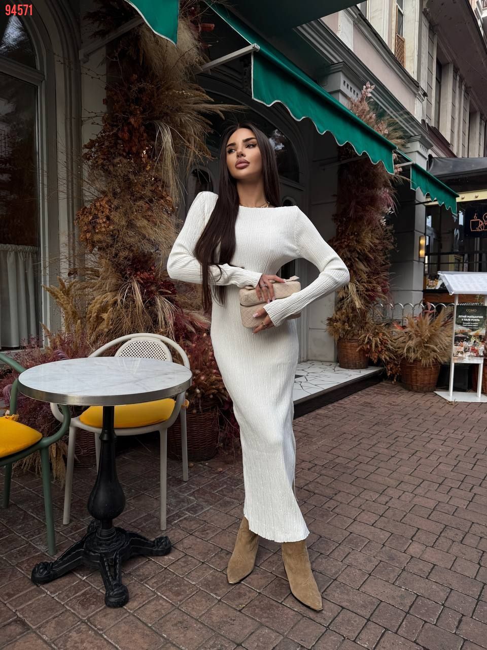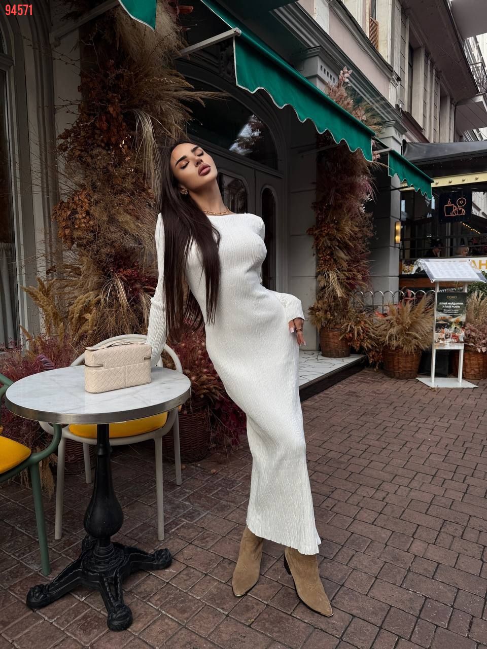 Тканина: Трикотажна сукня максі. Базова модель облягаючого крою з довгим рукавом