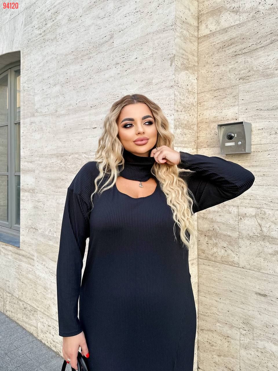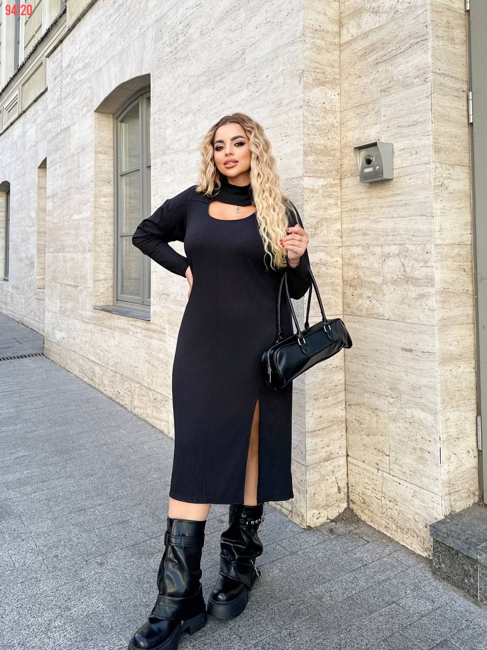 Сукня йде оверсайс, на грудях виріз який підкреслює чарівність ваших форм, розріз зліва довжина 35 см,плече приспущене