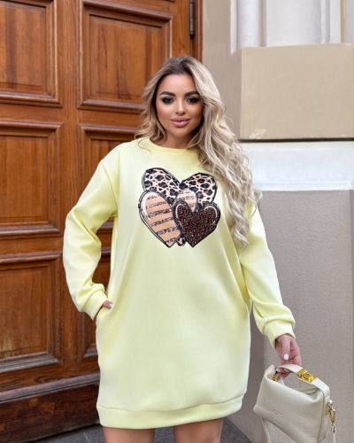 54-58 довжина плаття 95, рукав від горла 85, груди , талія та стегна рекомендовано до 135