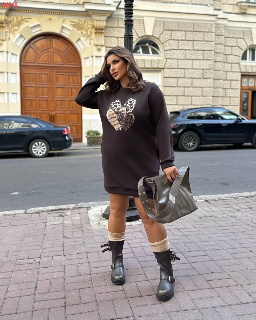 54-58 довжина плаття 95, рукав від горла 85, груди , талія та стегна рекомендовано до 135